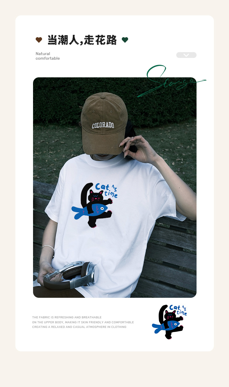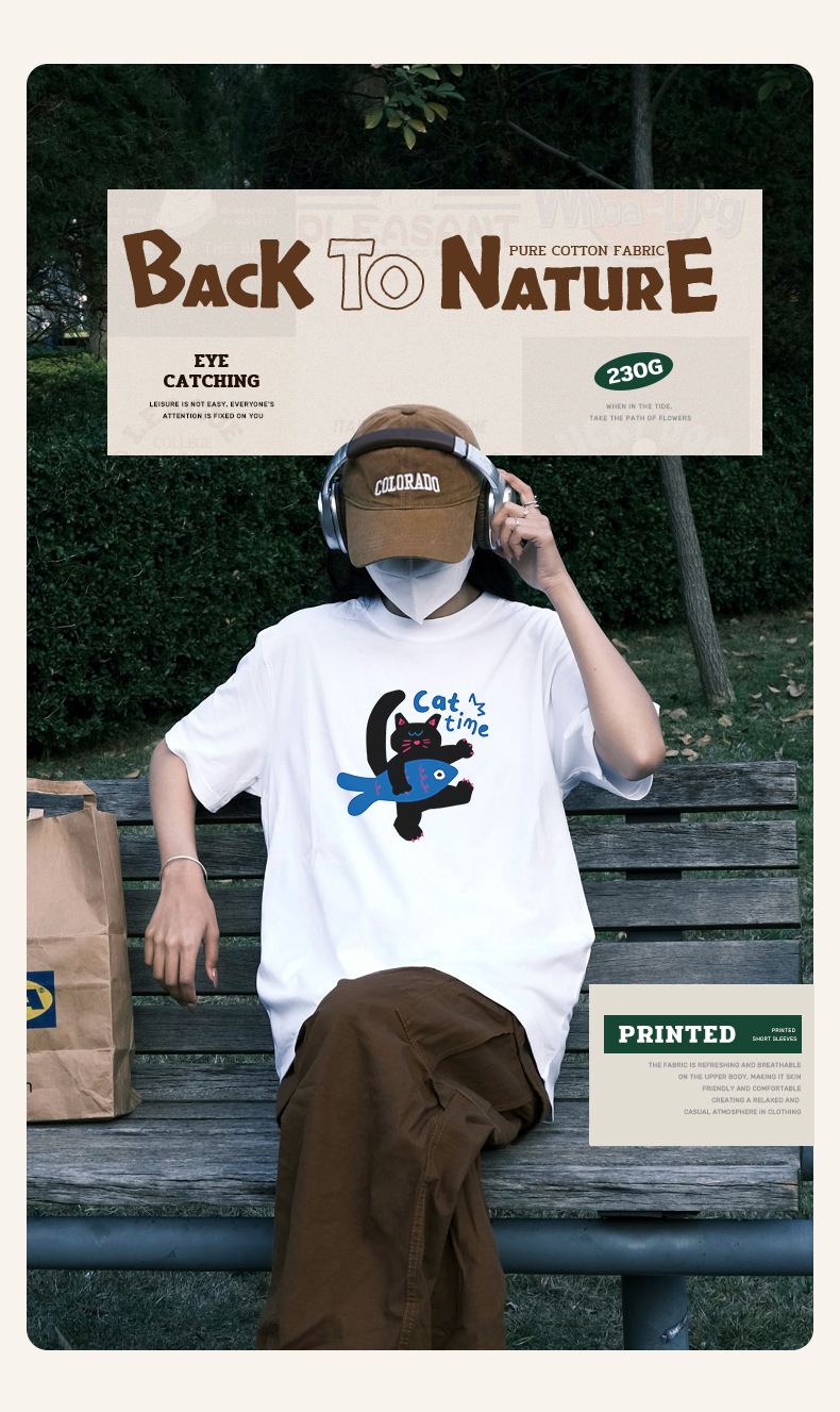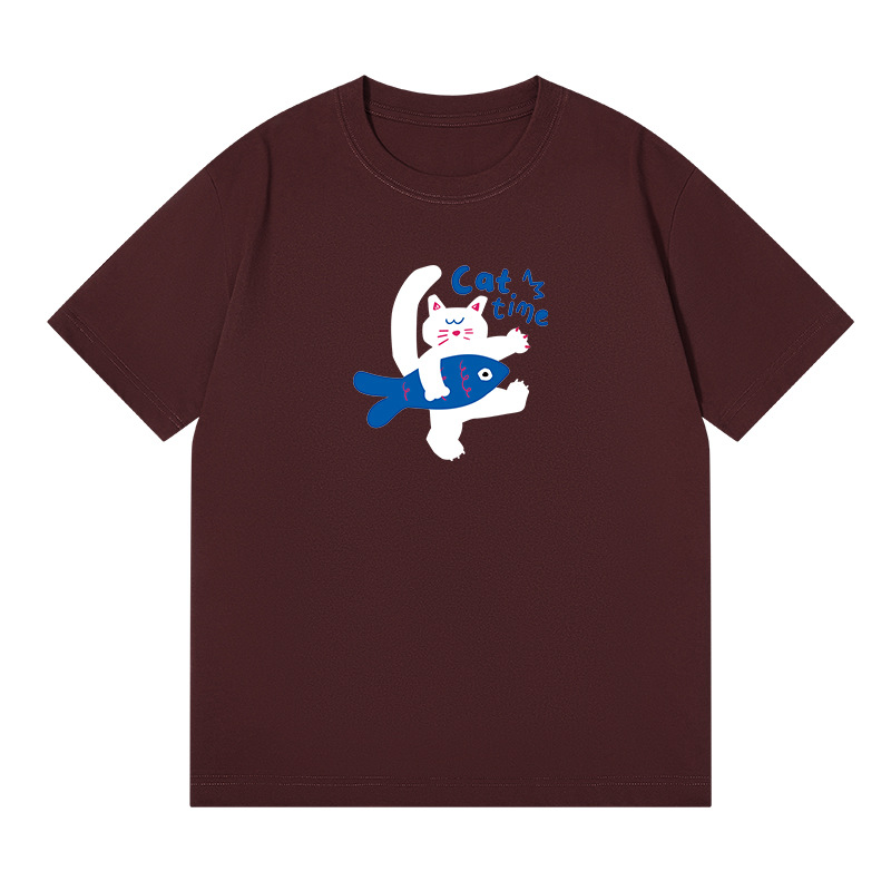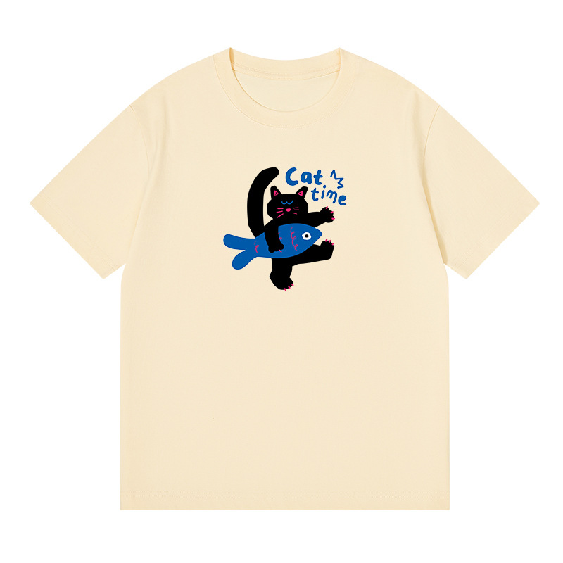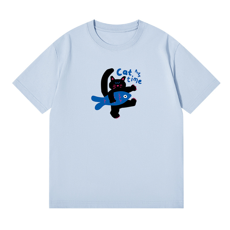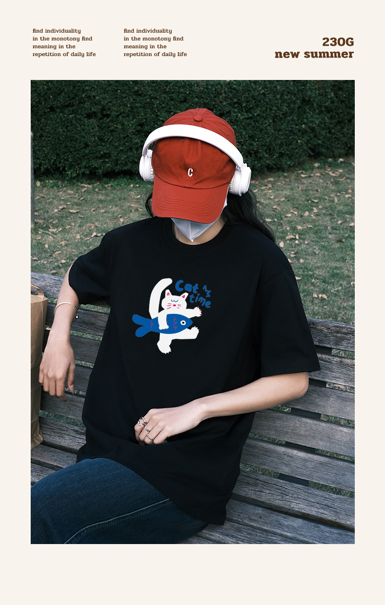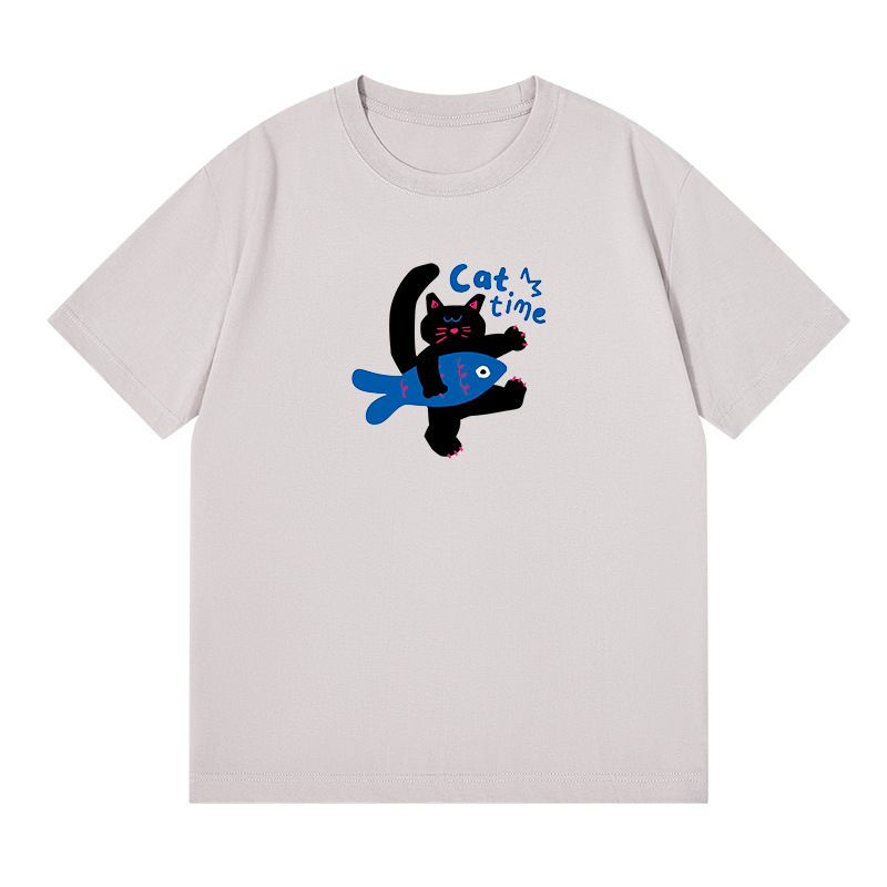 2024 여름 간단한 캐주얼 인쇄 반팔 티셔츠 소녀의 느슨한 면 둥근 목 어깨 탑 여성용 티셔츠스토어 가기