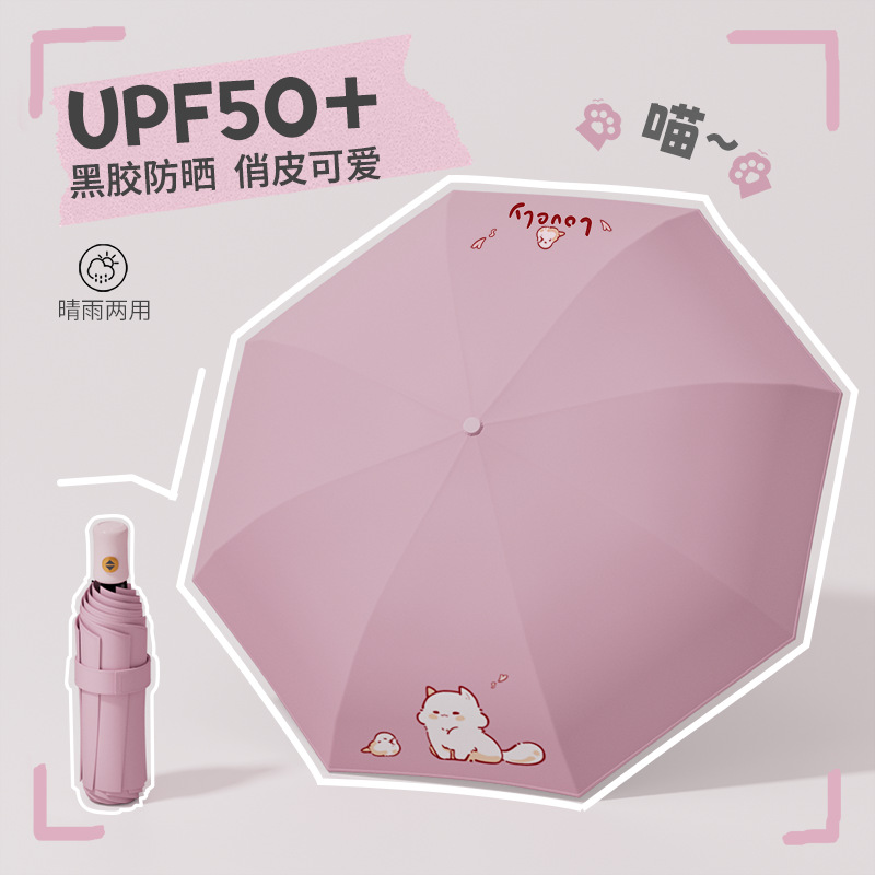비 만화 재미 고양이 태양 우산 여성 맑고 비 이중 사용 어린이 우산 선 스크린 자동 접는 우산스토어 가기