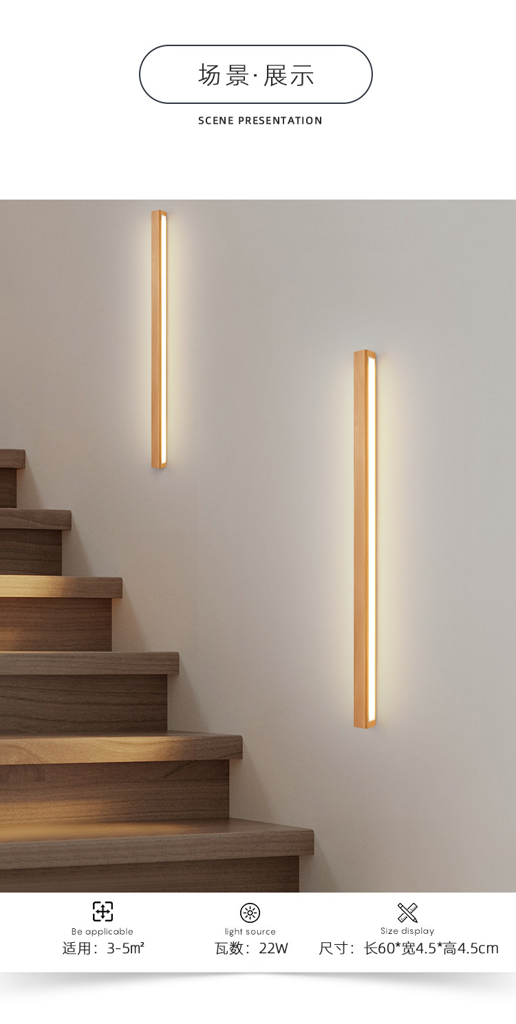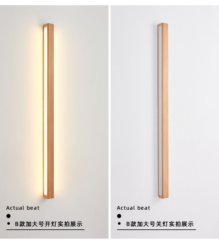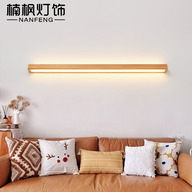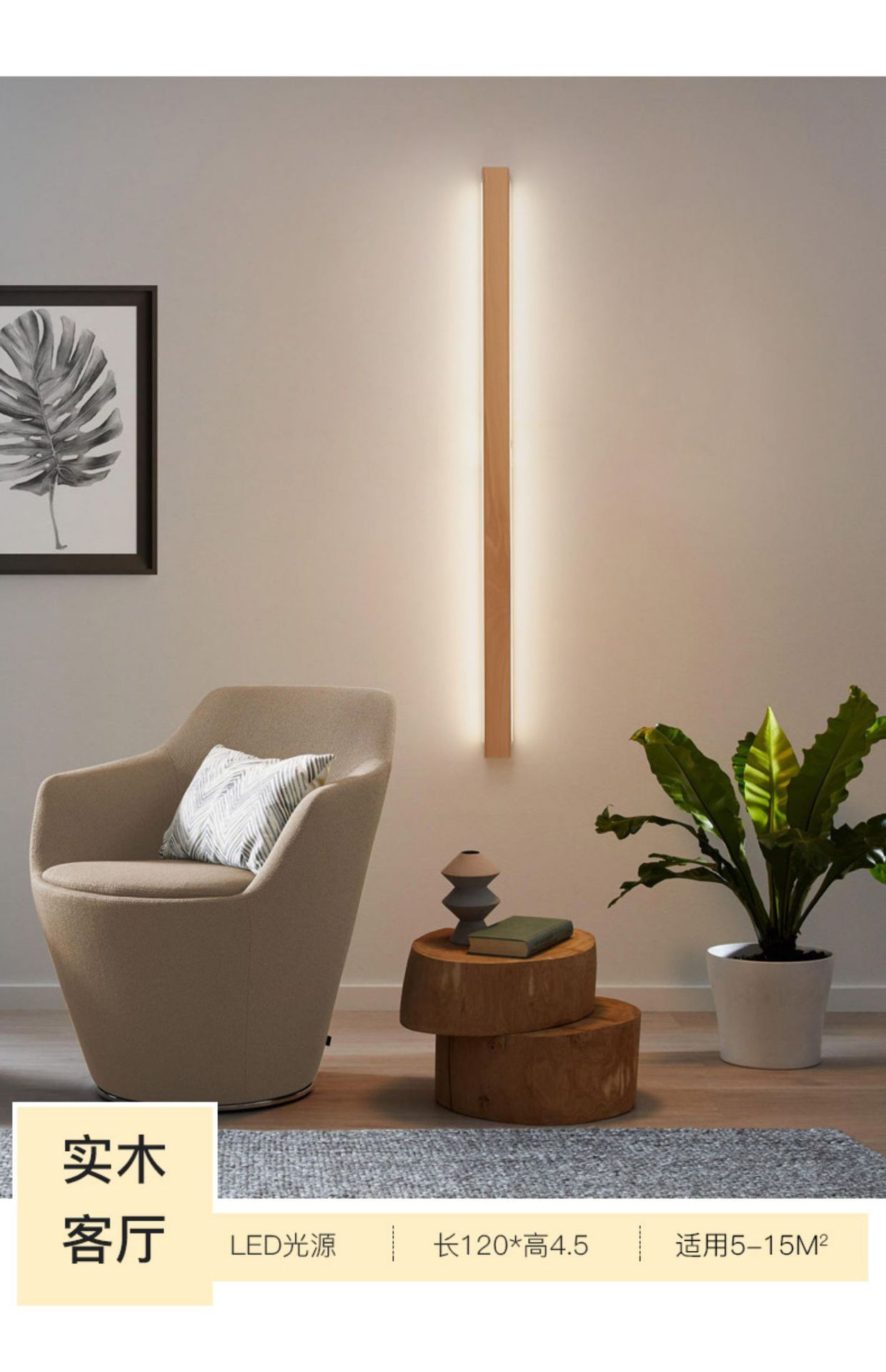 일본식 통나무 침실 램프 월넛 컬러 선형 스트립 램프 간단한 유형 거실 배경 벽 램프