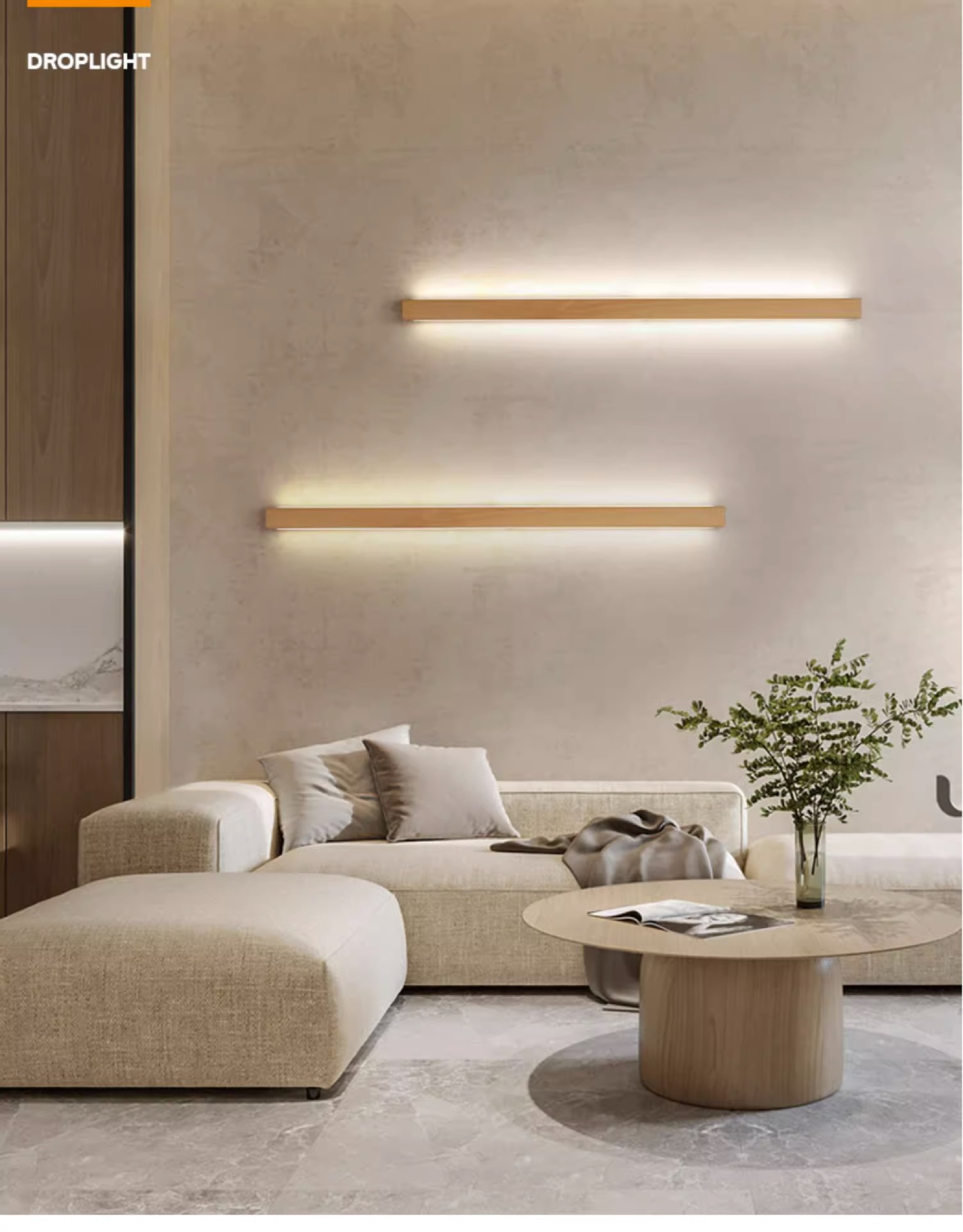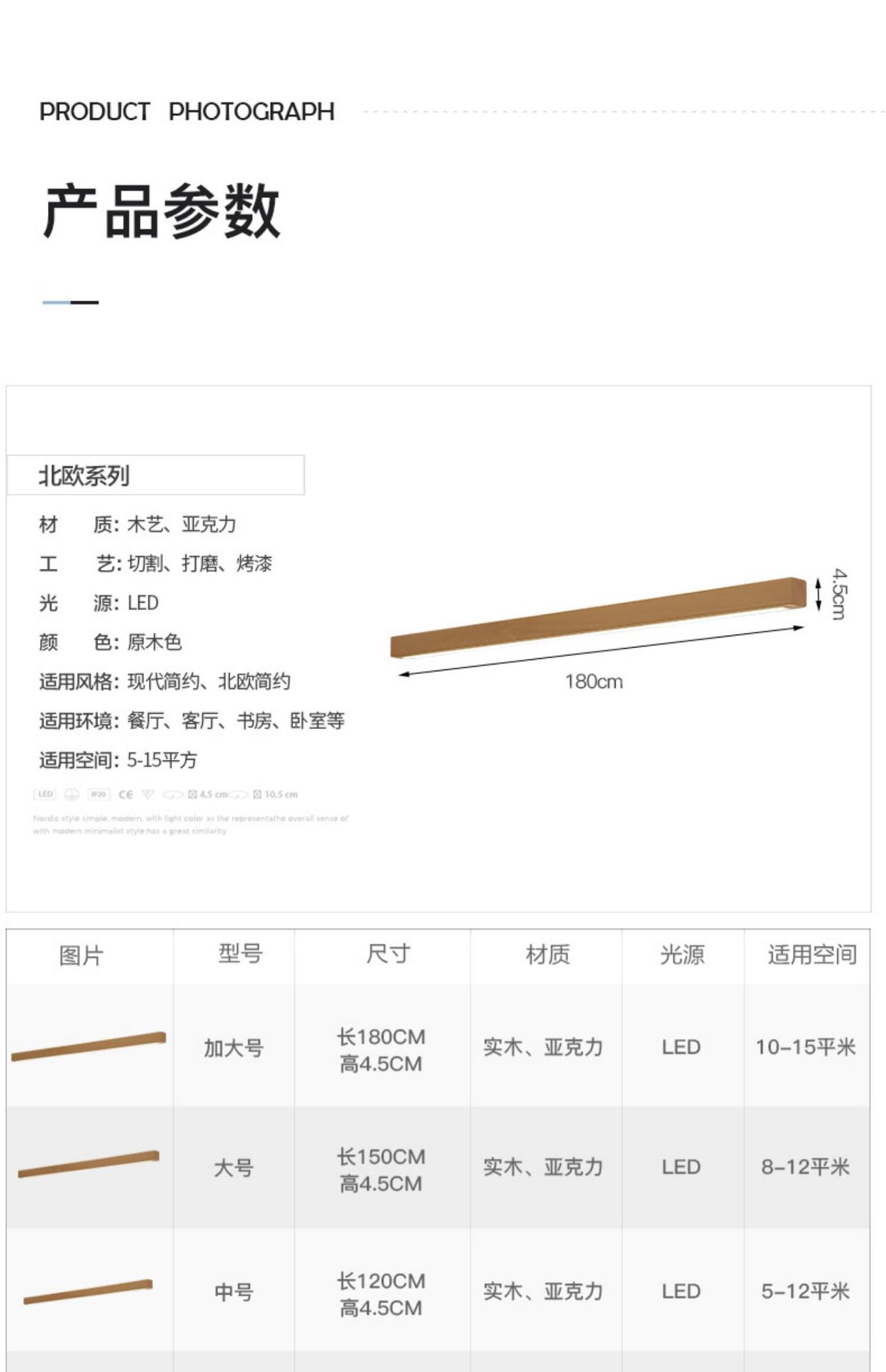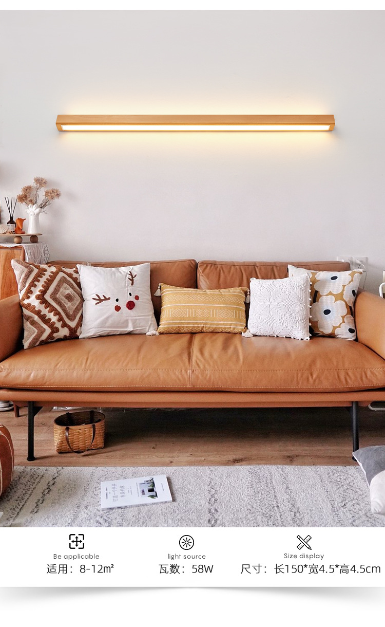 일본식 통나무 침실 램프 월넛 컬러 선형 스트립 램프 간단한 유형 거실 배경 벽 램프