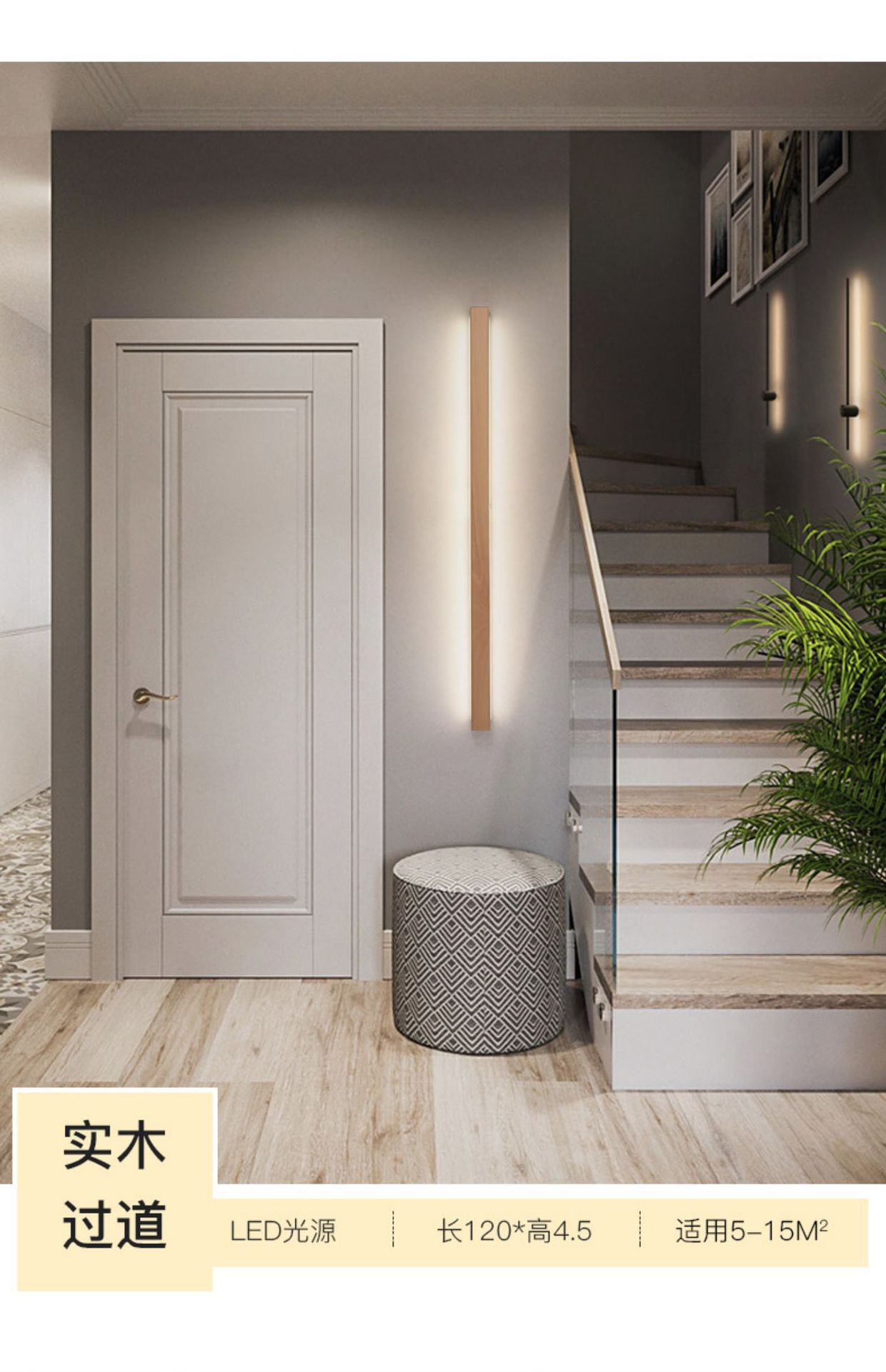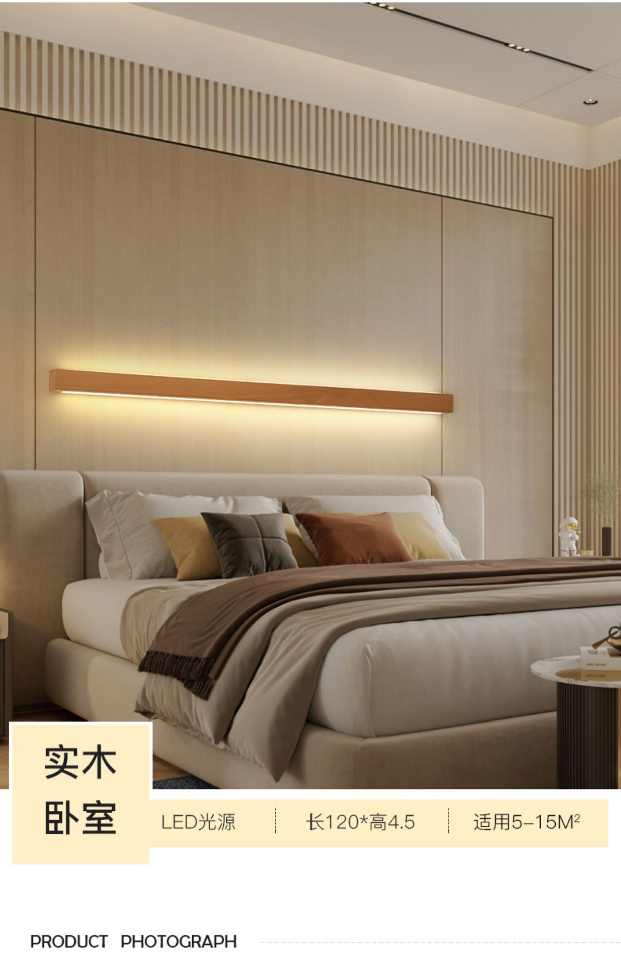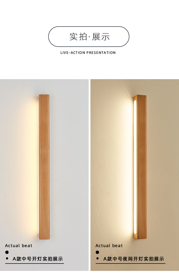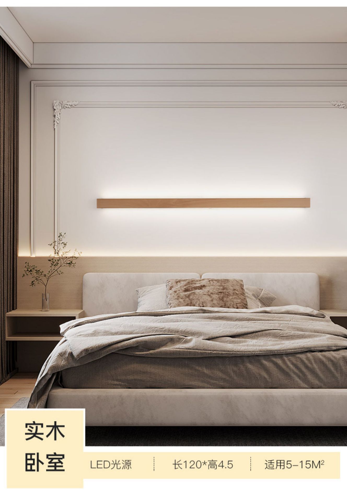 일본식 통나무 침실 램프 월넛 컬러 선형 스트립 램프 간단한 유형 거실 배경 벽 램프스토어 가기