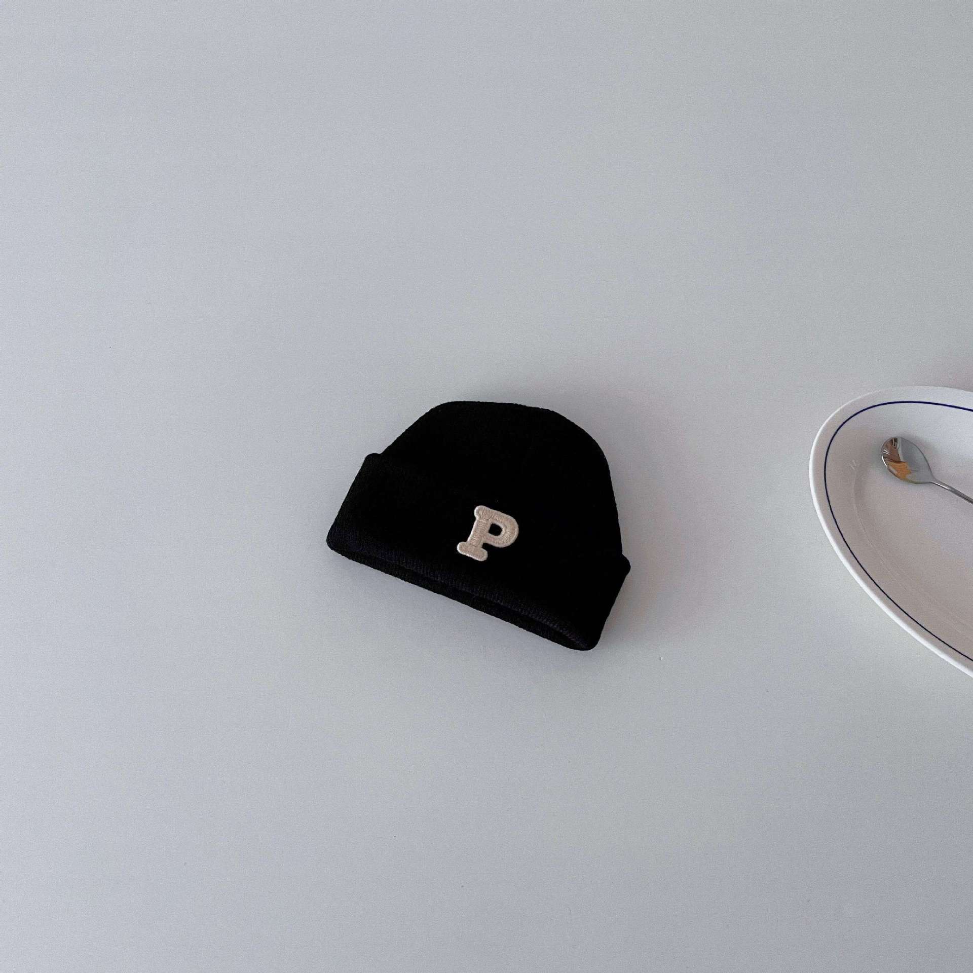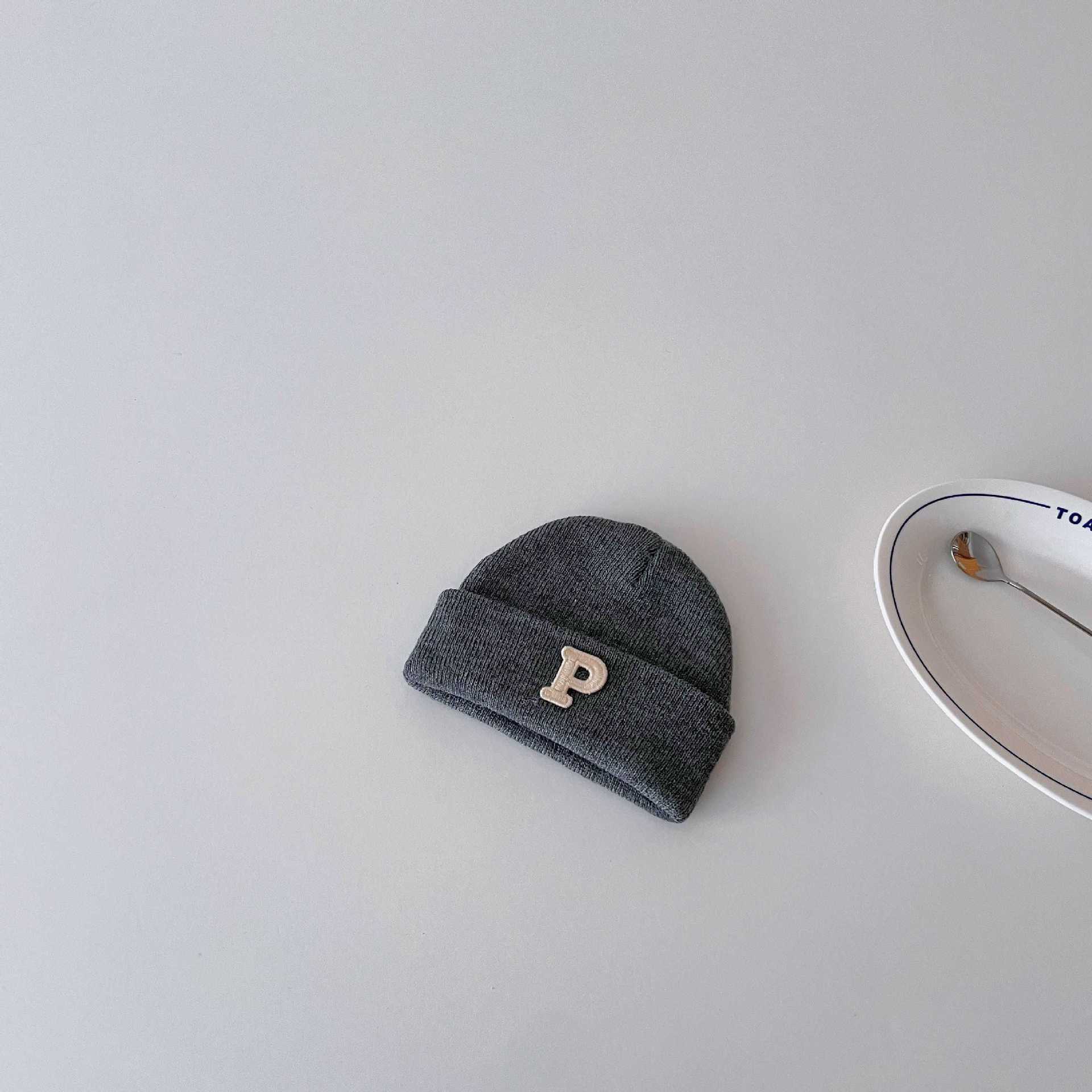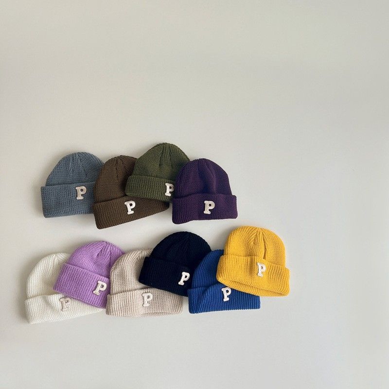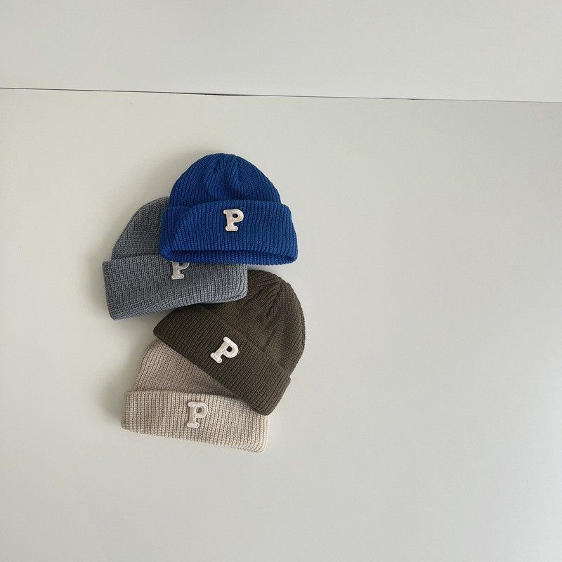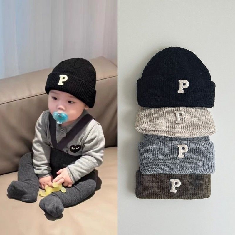 Ins 아기 가을과 겨울 양모 한국 스타일 간단한 편지 아기 모자 여성과 어린이 니트 따뜻한 플립 모자 트렌디