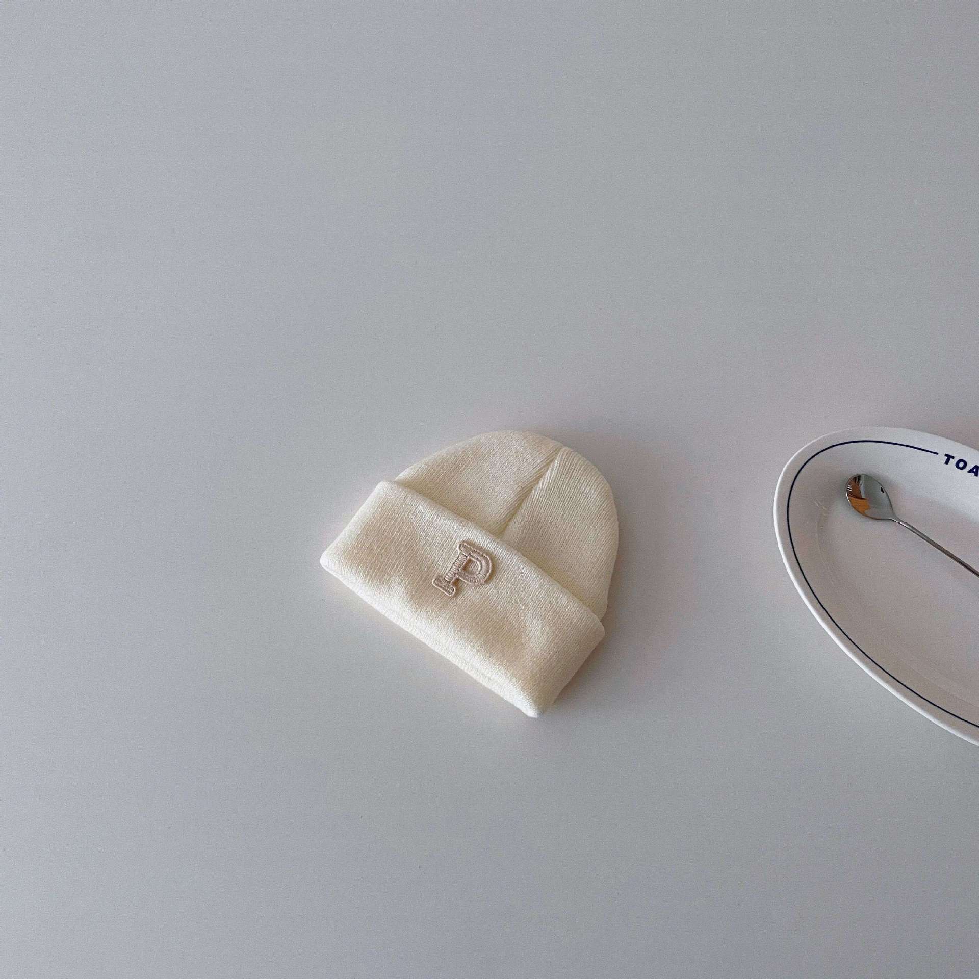 Ins 아기 가을과 겨울 양모 한국 스타일 간단한 편지 아기 모자 여성과 어린이 니트 따뜻한 플립 모자 트렌디스토어 가기