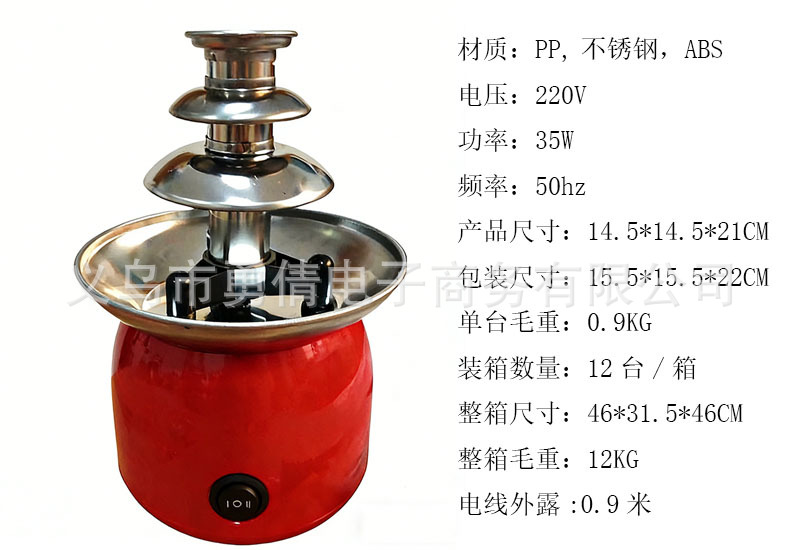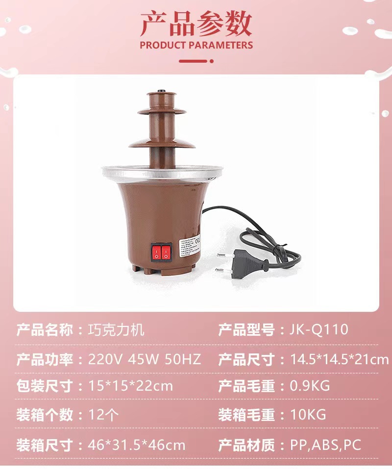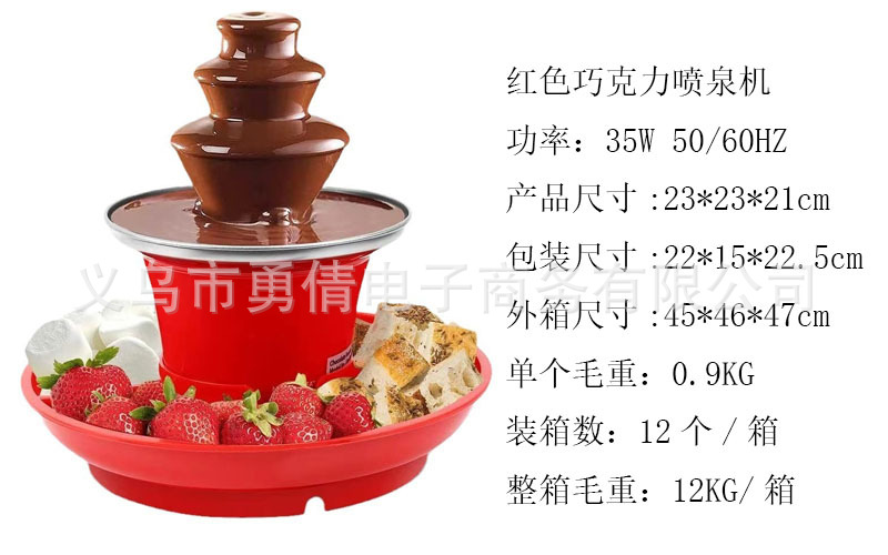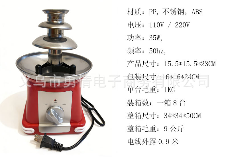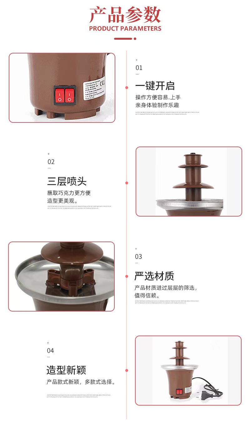 【温馨提示】:原装附带英文说明书;喷泉机长时间使用建议2小时内关掉喷泉键让电机散热15分钟以上;禁忌巧克力酱太稠或变硬的时候开启喷泉键,这样操作电机是带不动的,只会损坏电机;如有疑问可联系旺旺客服咨询。