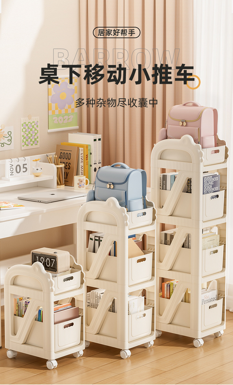 스몰 트롤리 틈새 수납함 학생 책상 밑 가방 정리대 어린이 장난감 학습용품 정리대 책상