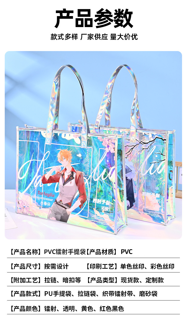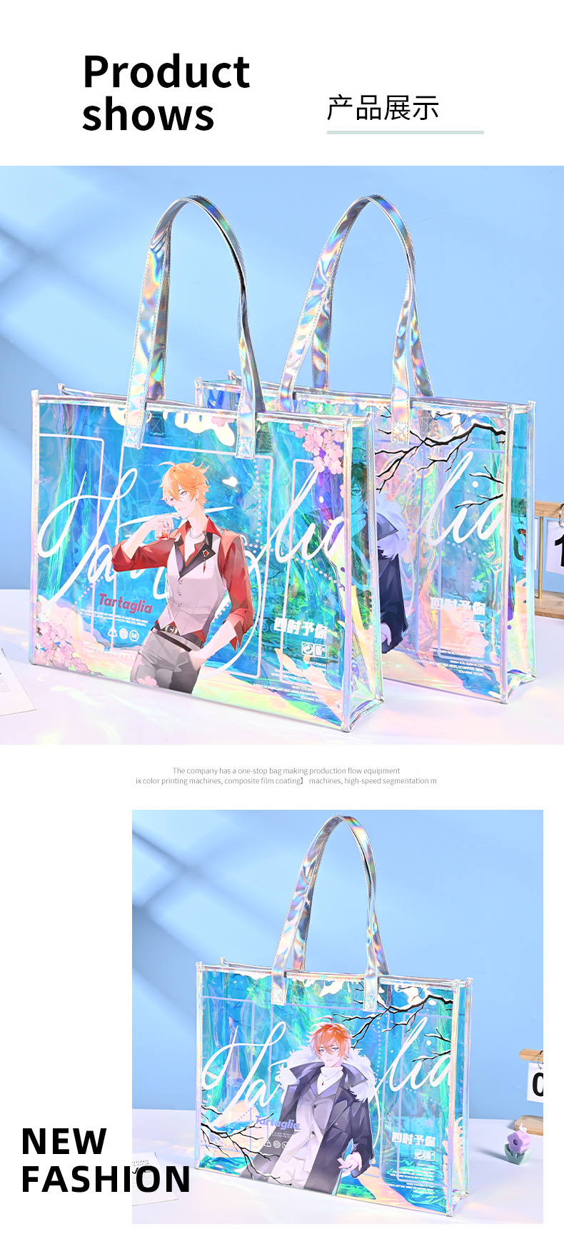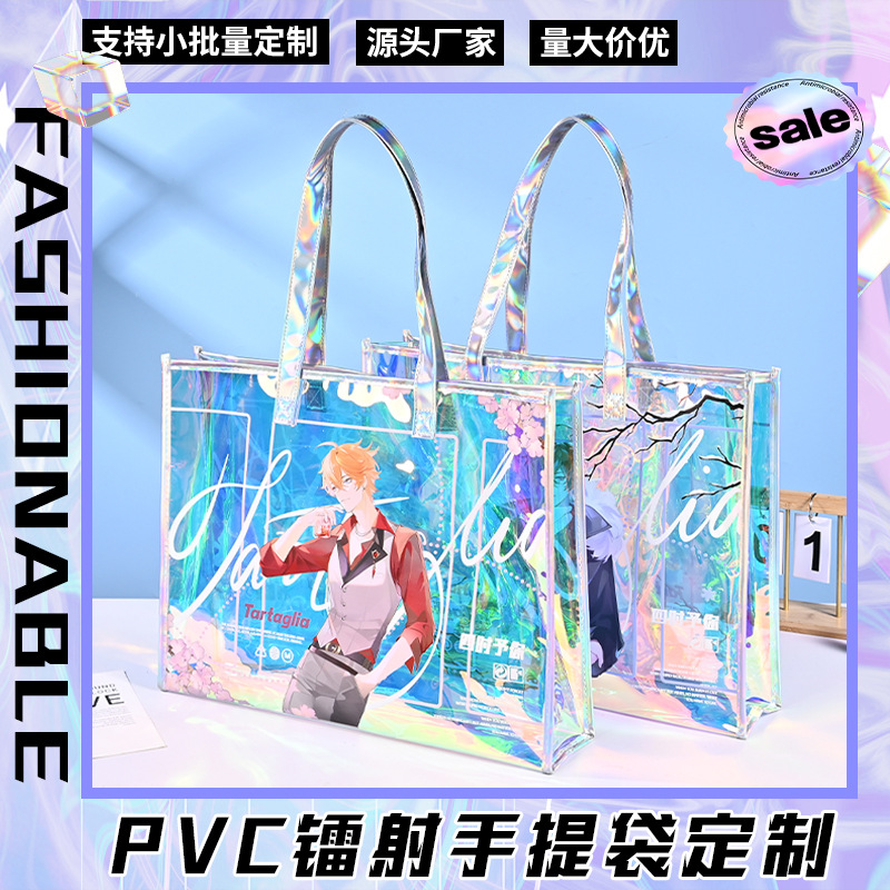 PVC 레이저 가방 맞춤형 패션 판타지 쇼핑백 투명 어깨 화장품 핸드백 맞춤형 인쇄 가능한 로고