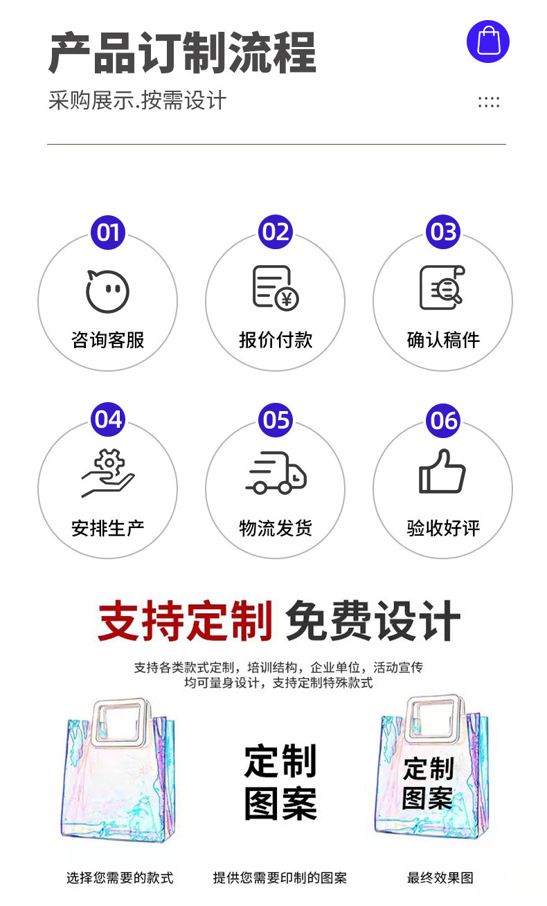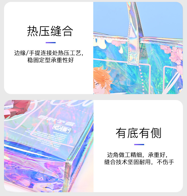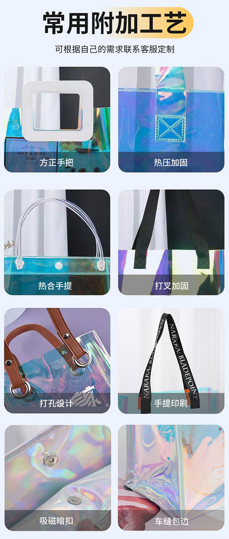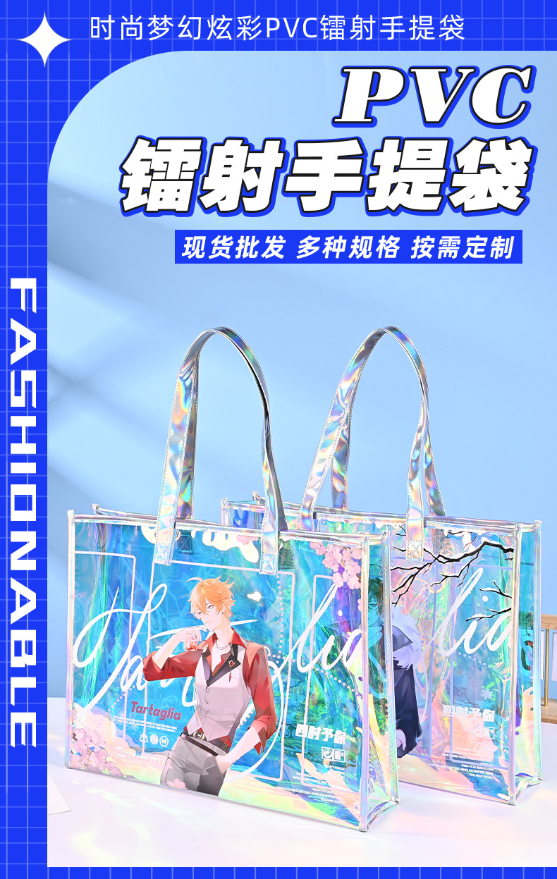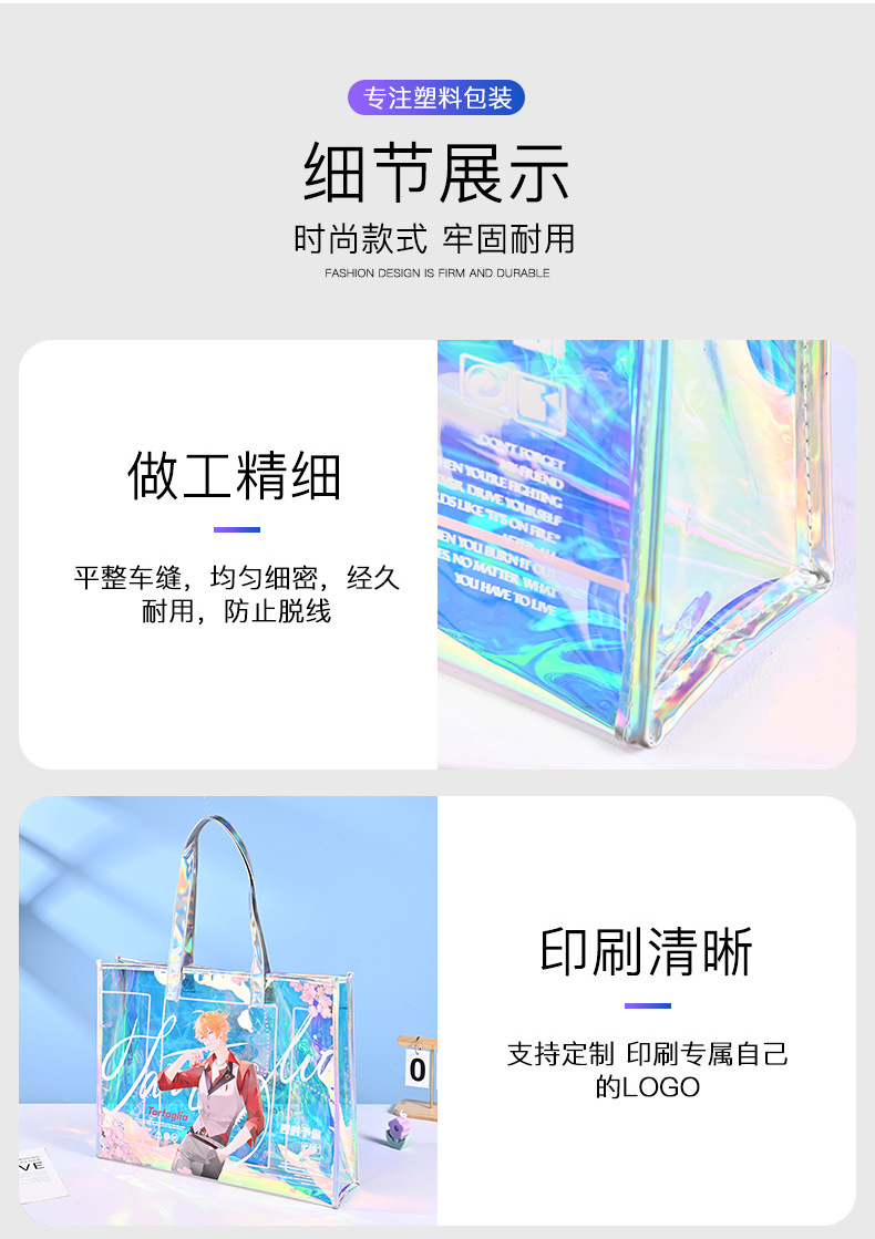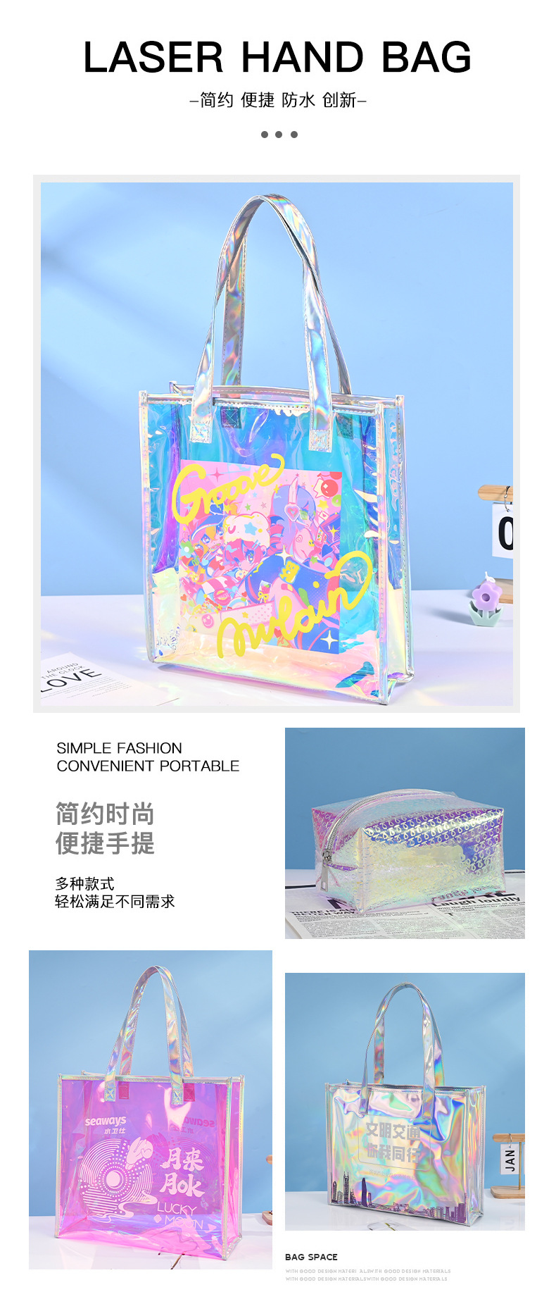 PVC 레이저 가방 맞춤형 패션 판타지 쇼핑백 투명 어깨 화장품 핸드백 맞춤형 인쇄 가능한 로고스토어 가기