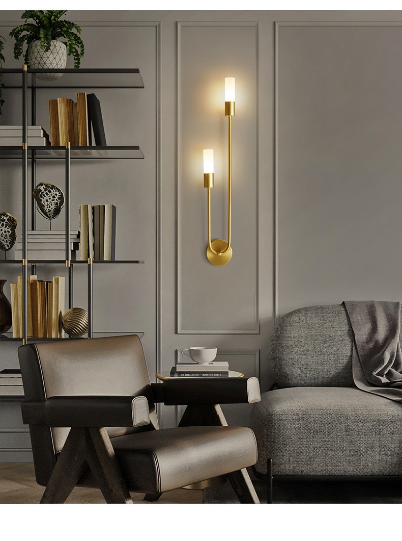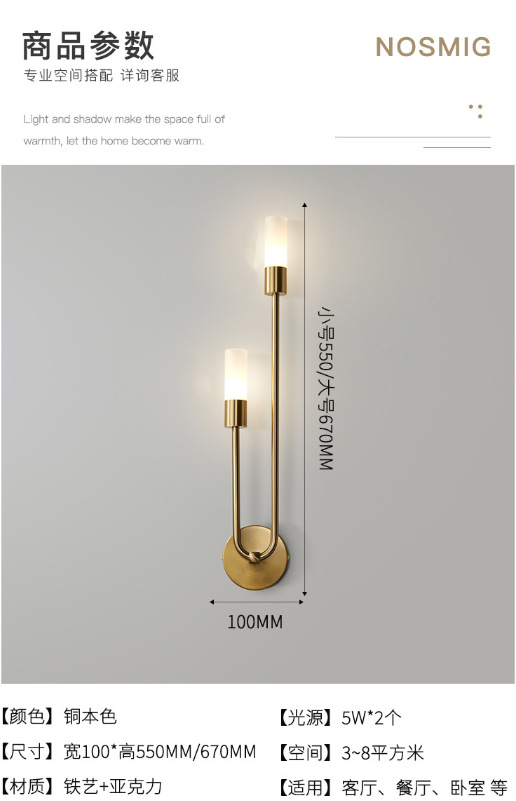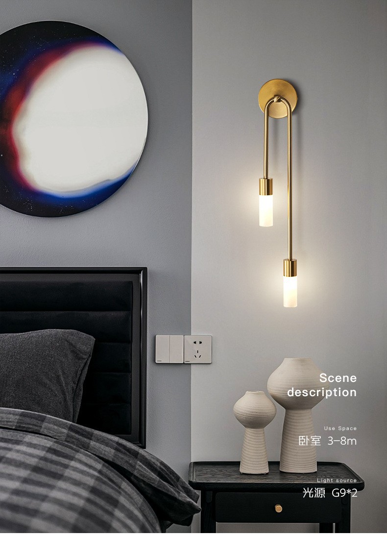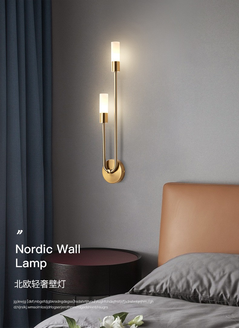북유럽 미니멀리스트 빛 럭셔리 거실 배경 벽 램프 침실 침실 벽 램프 더블 헤드 창조적 인 현대 간단한 장식 벽 램프