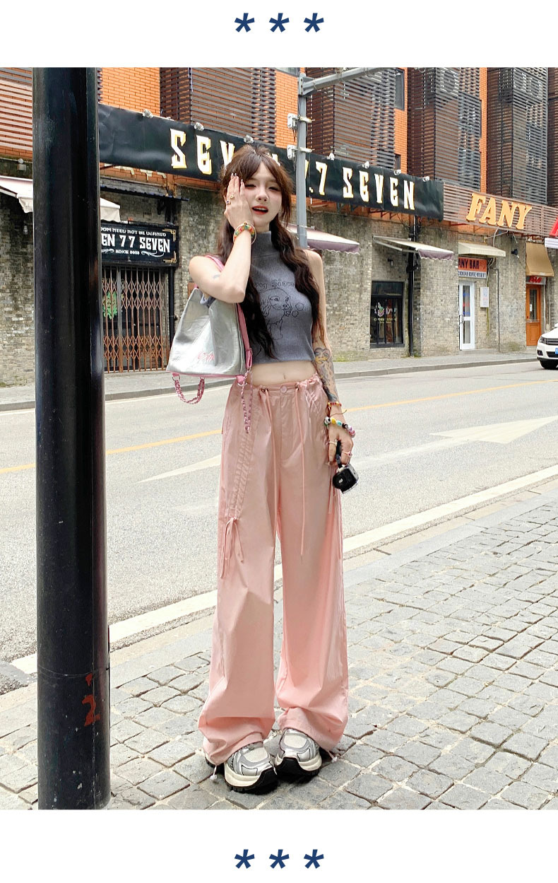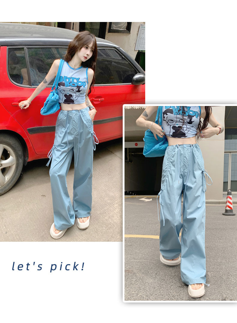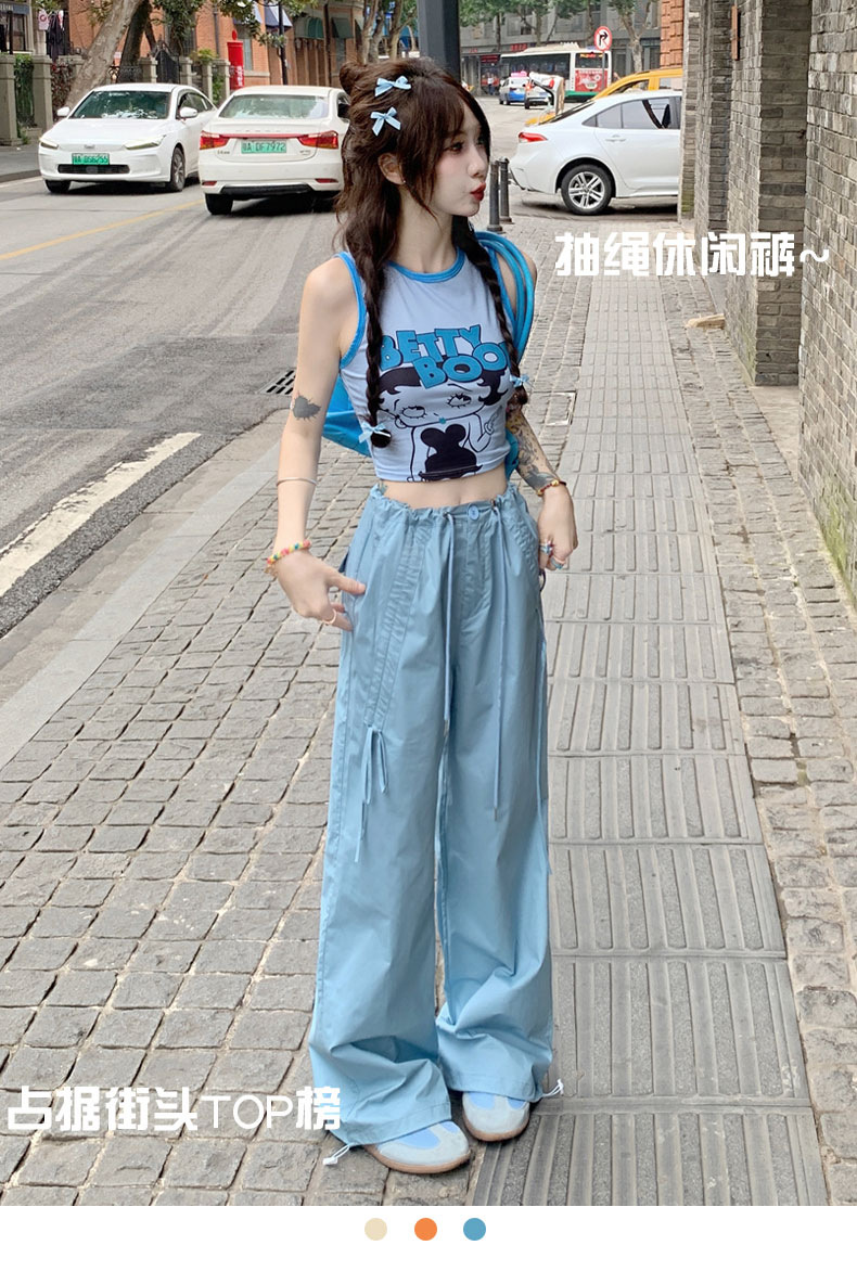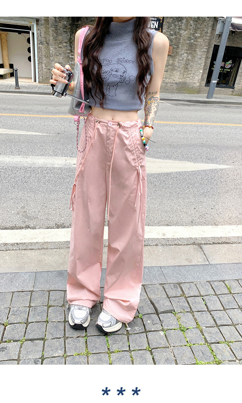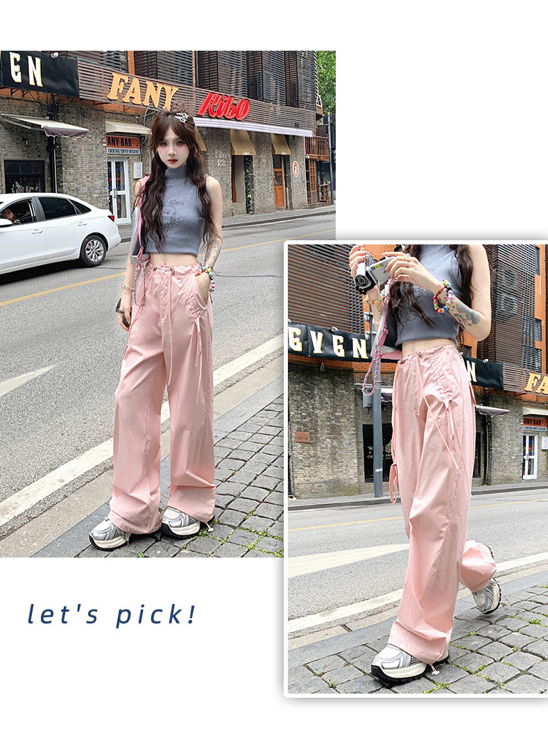 얇은 와이드 레그 캐주얼 팬츠 여성의 2024 새로운 신속 건조 등산 바지 드로스트링 발목 팬츠 올매치 스트레이트 팬츠스토어 가기
