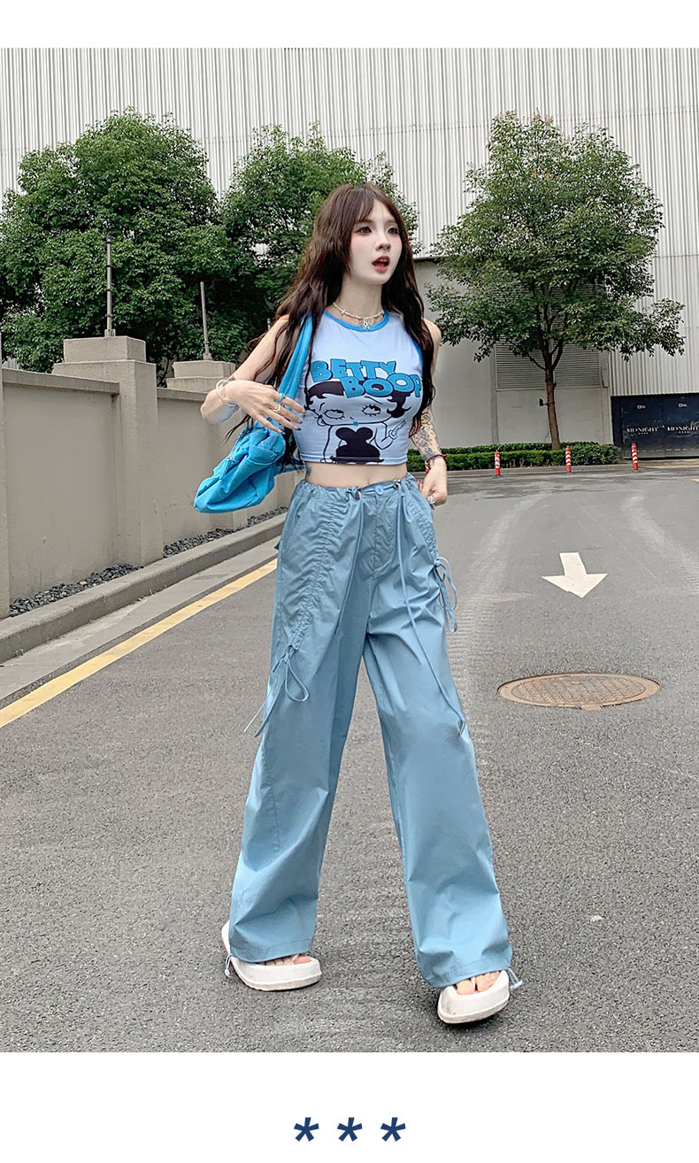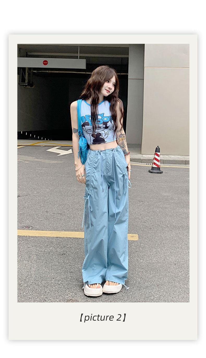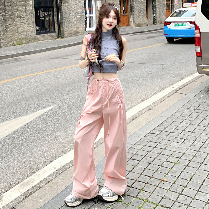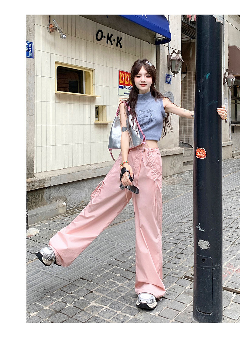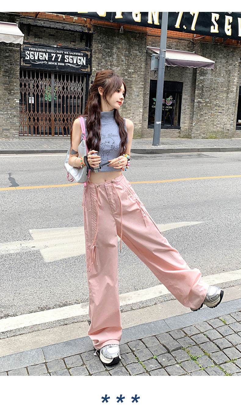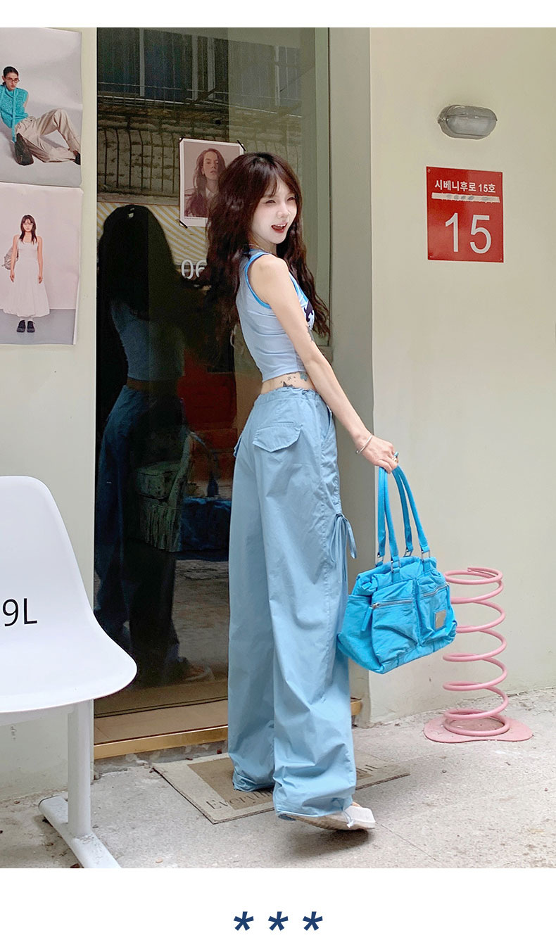 얇은 와이드 레그 캐주얼 팬츠 여성의 2024 새로운 신속 건조 등산 바지 드로스트링 발목 팬츠 올매치 스트레이트 팬츠스토어 가기