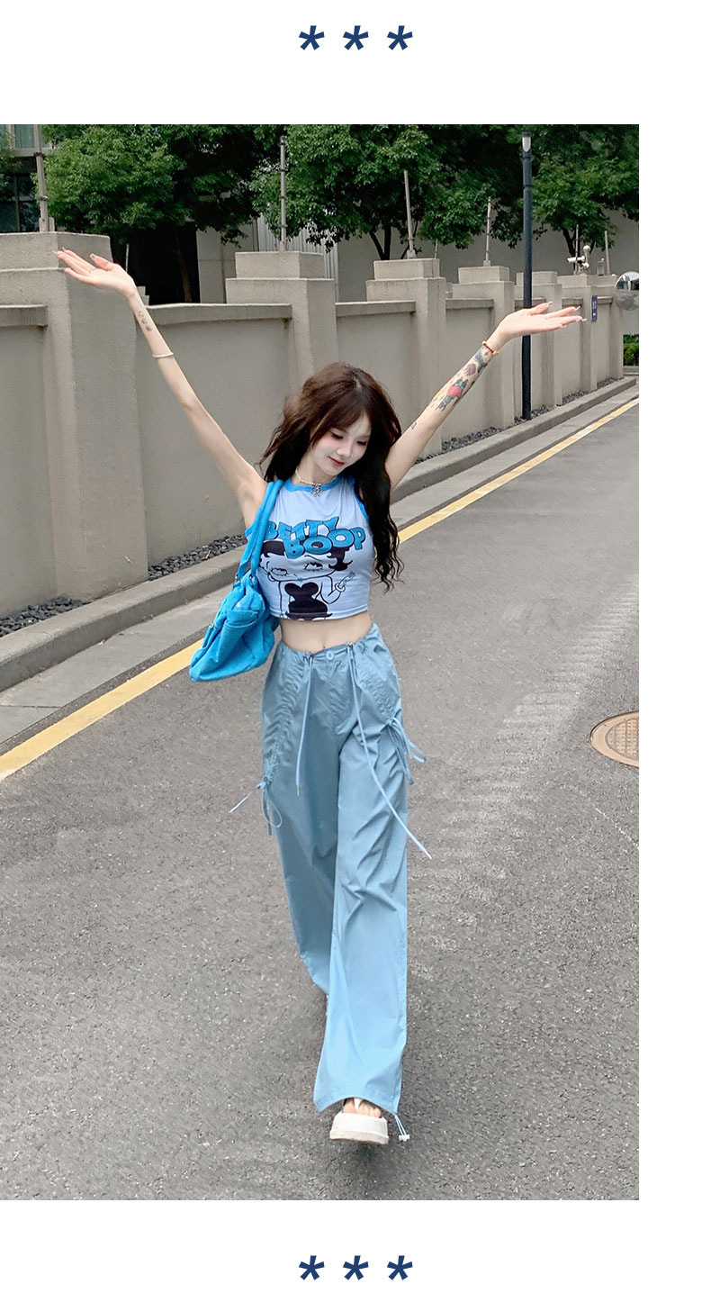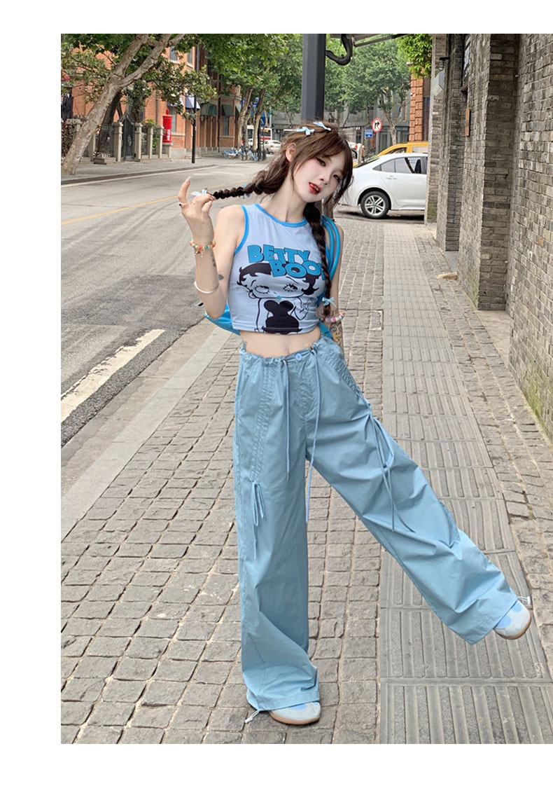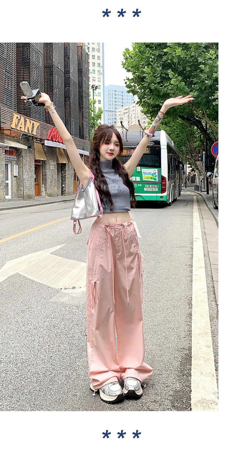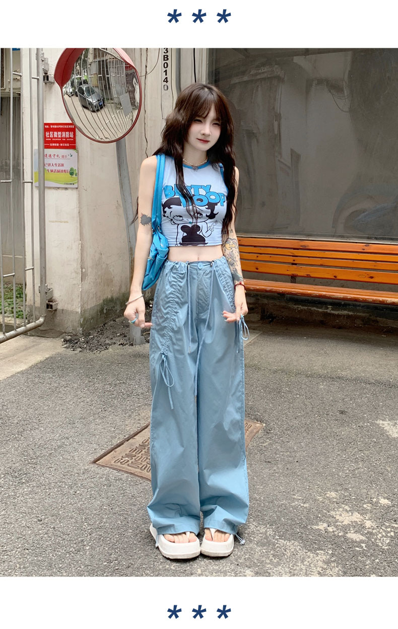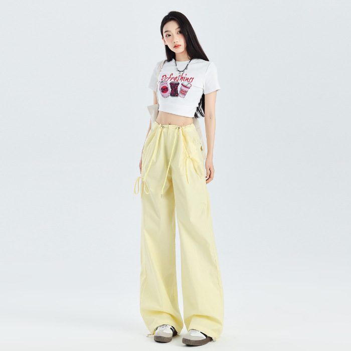 얇은 와이드 레그 캐주얼 팬츠 여성의 2024 새로운 신속 건조 등산 바지 드로스트링 발목 팬츠 올매치 스트레이트 팬츠스토어 가기