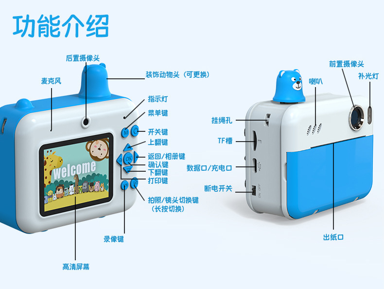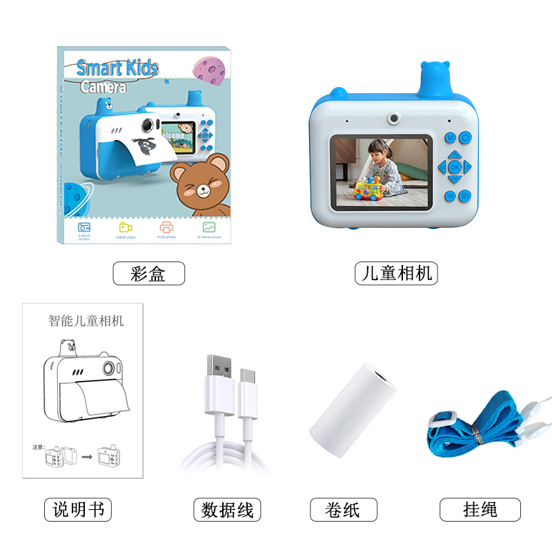 클래퍼 만화 스마트 어린이 카메라 HD 슈팅 듀얼 렌즈 인스턴트 장난감 게임 카메라