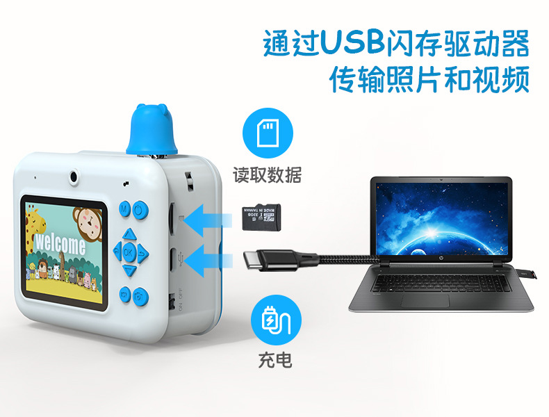 클래퍼 만화 스마트 어린이 카메라 HD 슈팅 듀얼 렌즈 인스턴트 장난감 게임 카메라스토어 가기