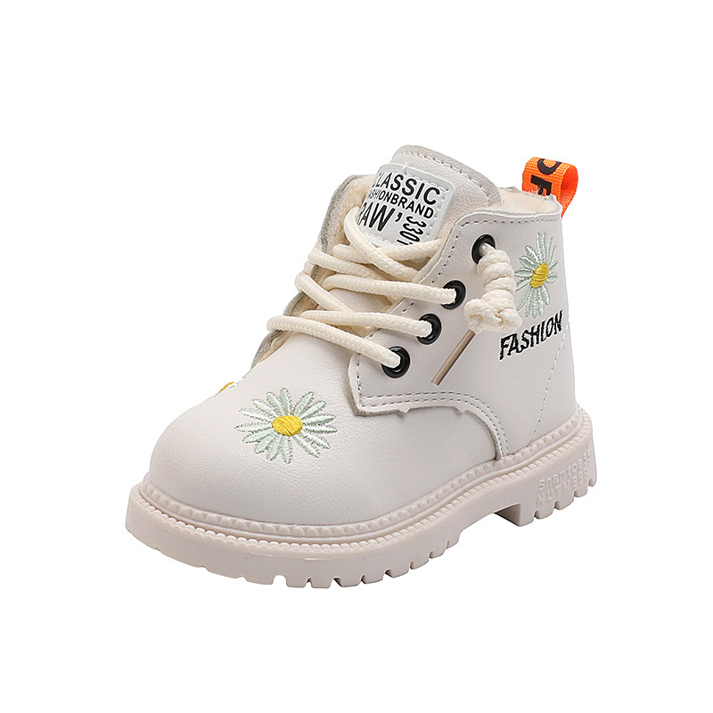 여자 마틴 부츠 2024 겨울 새로운 작은 소녀 Guofeng 자수 어린이 발목 부츠 3-6-12 세 기모 가죽 부츠