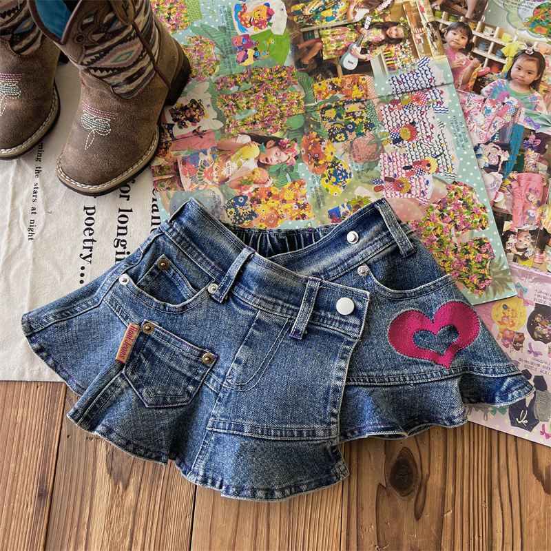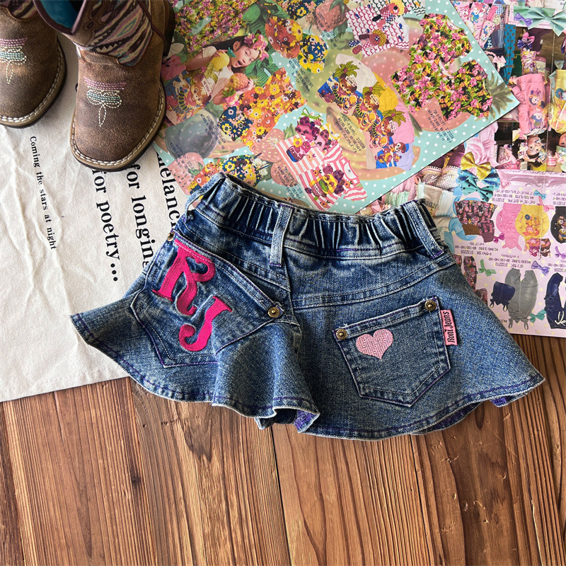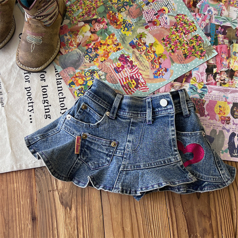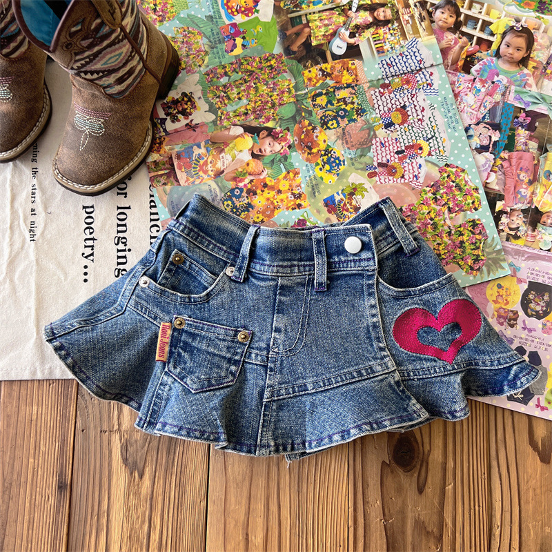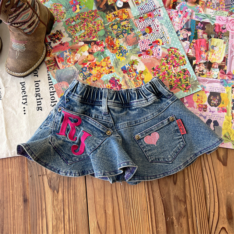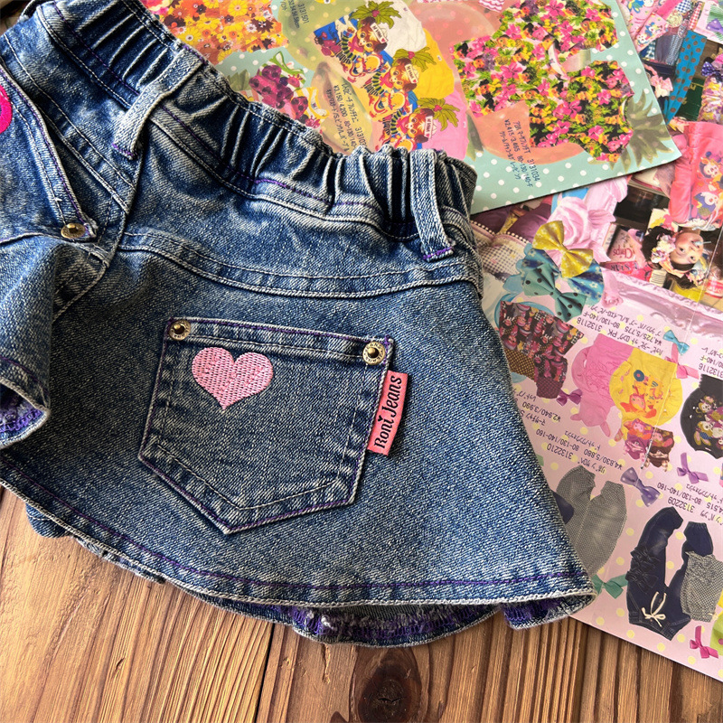 [재고] 일본 중세아동복 로니걸스 스커트 쥬에디션 수놓은 사랑 데님 안전 바지로 치마스토어 가기