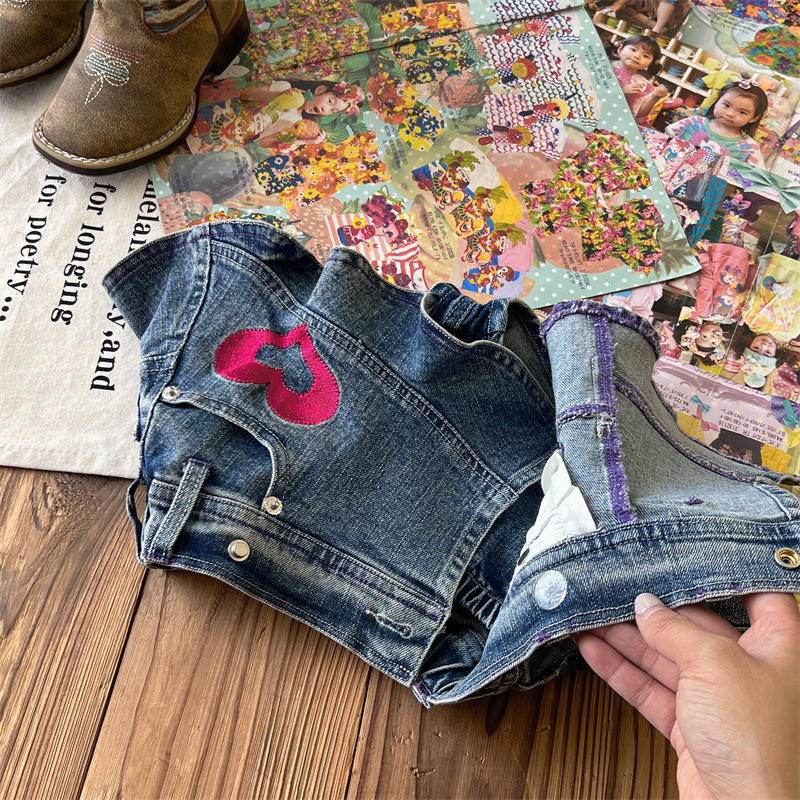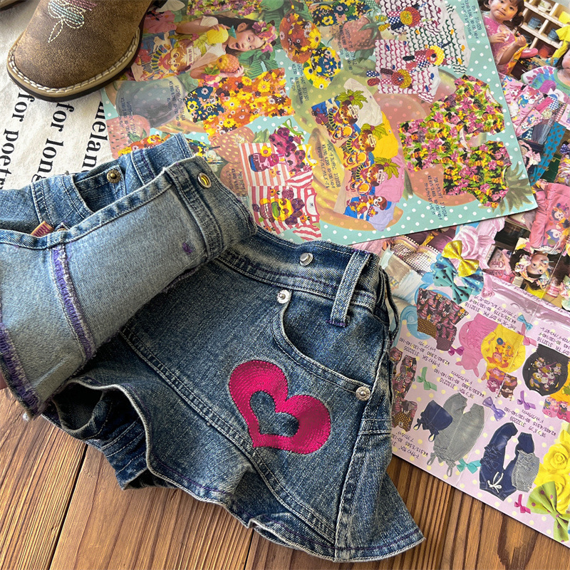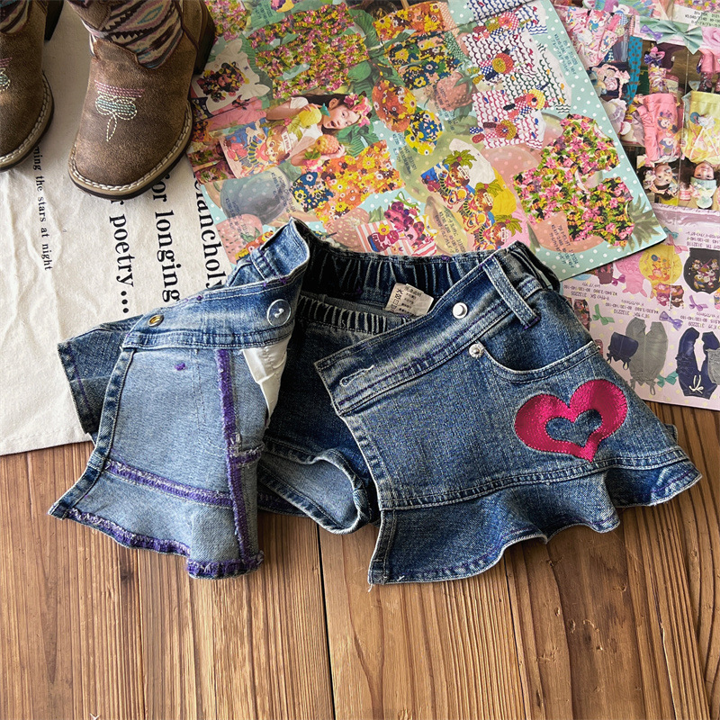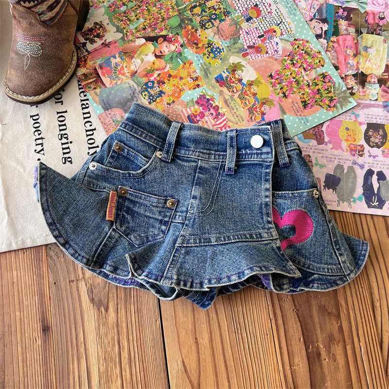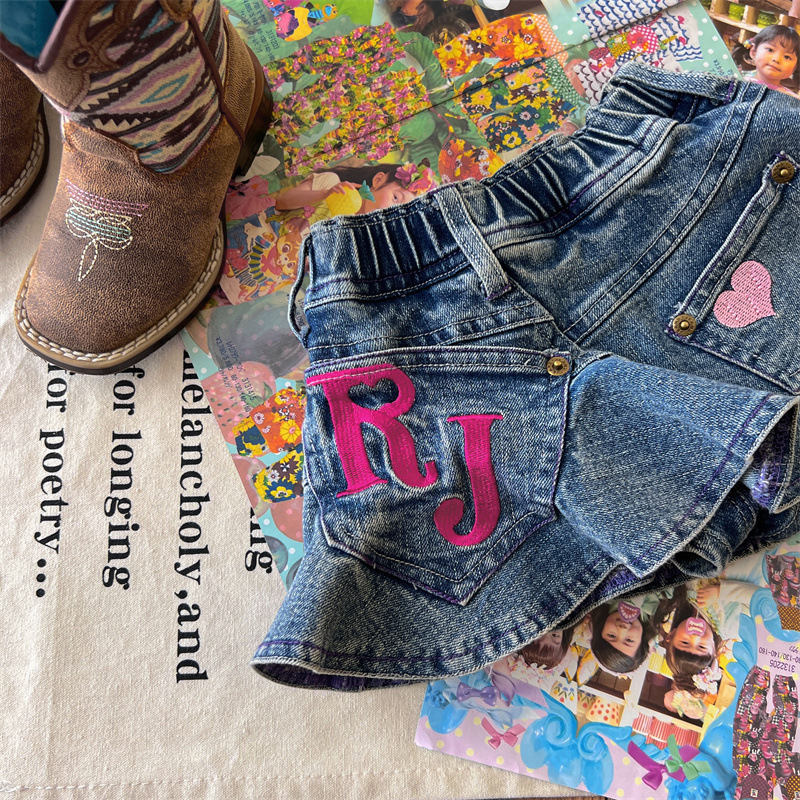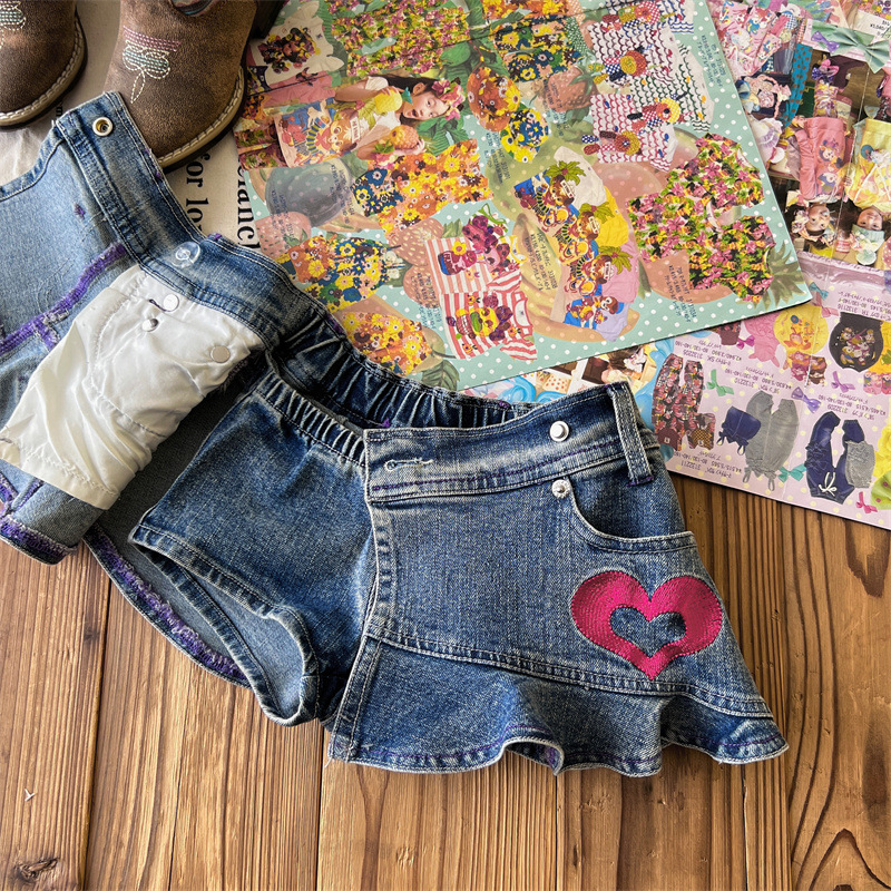 [재고] 일본 중세아동복 로니걸스 스커트 쥬에디션 수놓은 사랑 데님 안전 바지로 치마스토어 가기