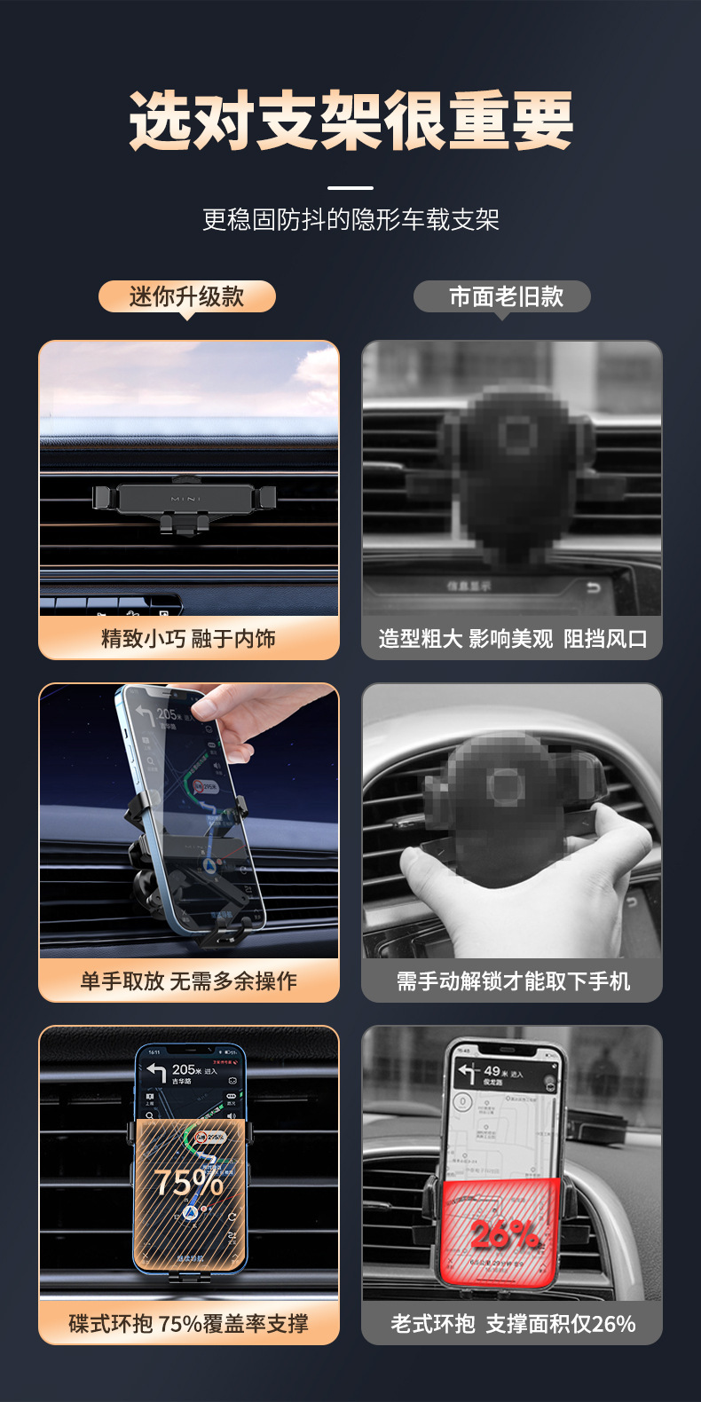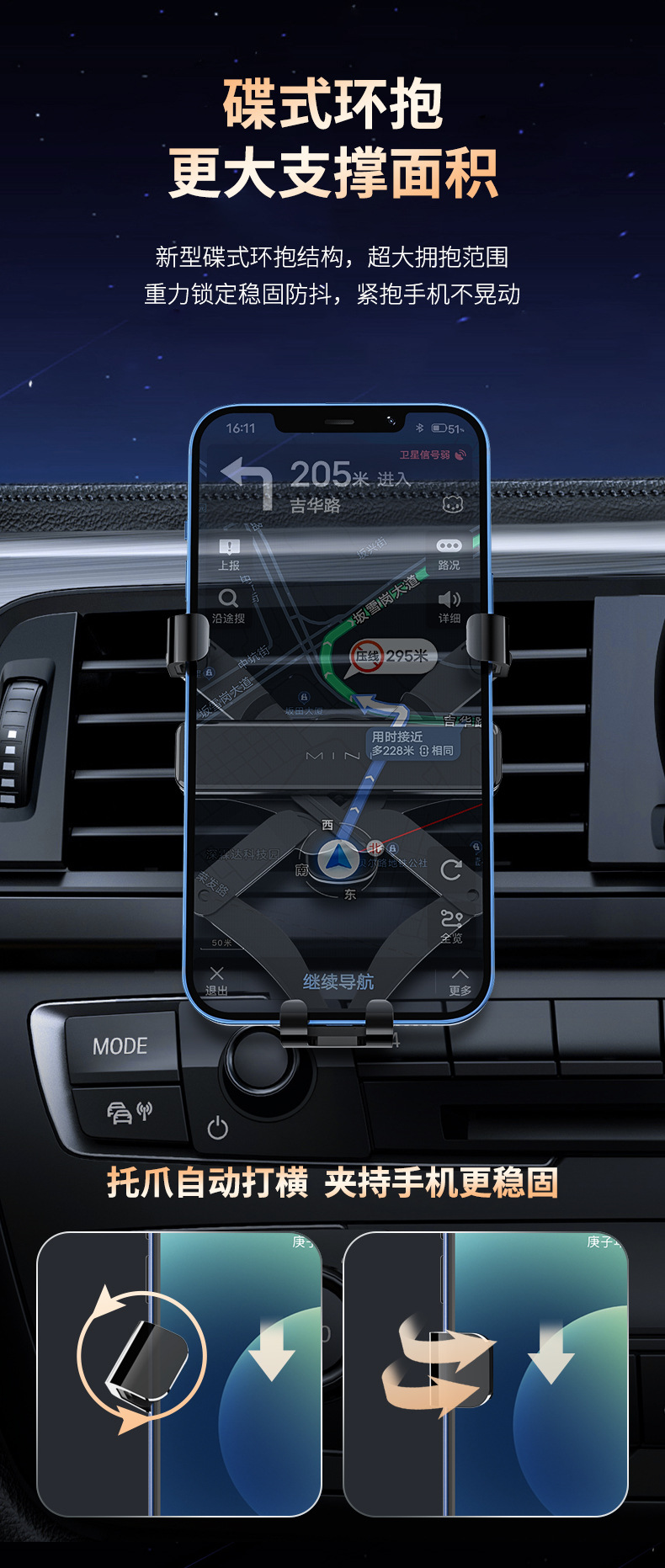 국경 간 하이 퀄리티 자동차 휴대 전화 브래킷 자동차 중력 유형 공기 출구 휴대 전화 브래킷 클립 금속 자동차 브래킷스토어 가기