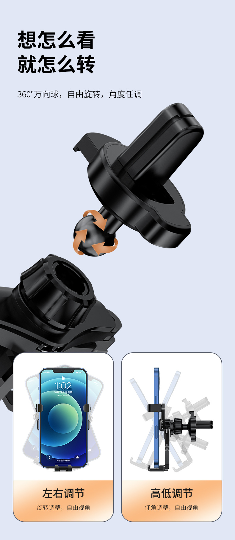 국경 간 하이 퀄리티 자동차 휴대 전화 브래킷 자동차 중력 유형 공기 출구 휴대 전화 브래킷 클립 금속 자동차 브래킷