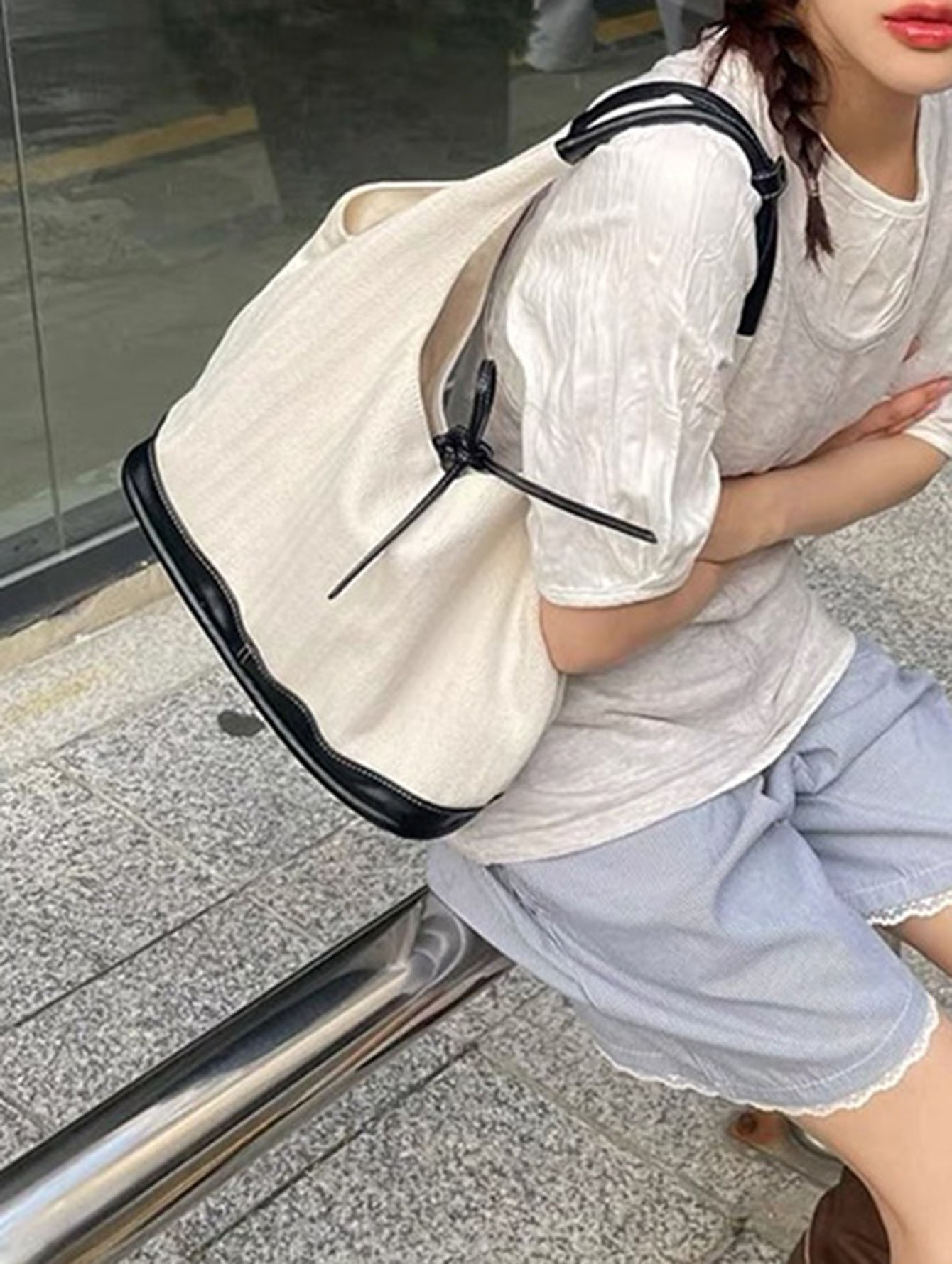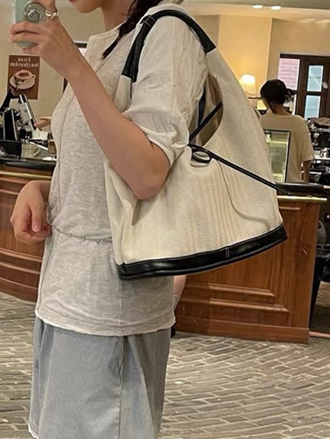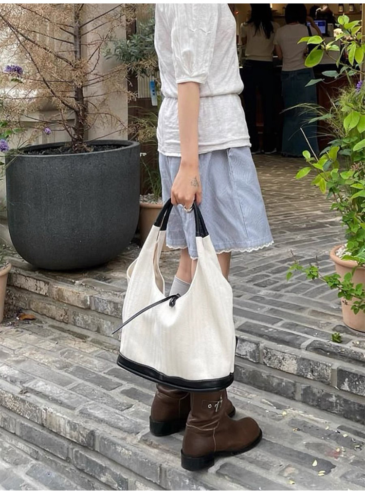 니치 레트로 숄더 캔버스 백 여성용 2025 신상 한국 스타일 심플 출근용 미니백 겨드랑이 가방스토어 가기