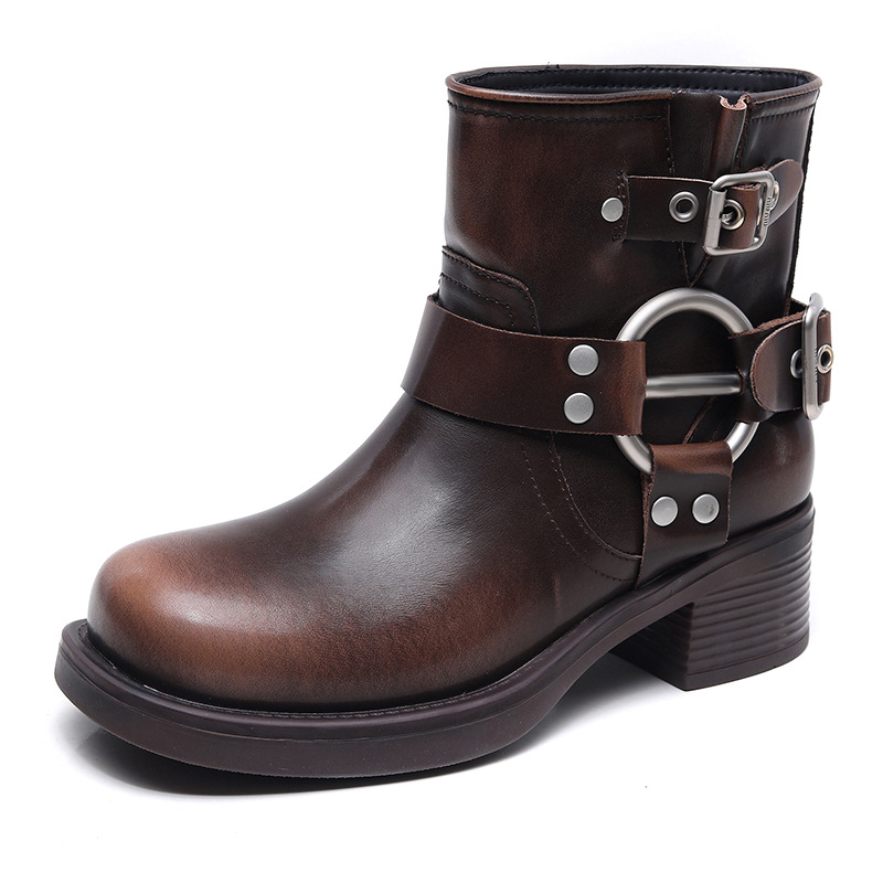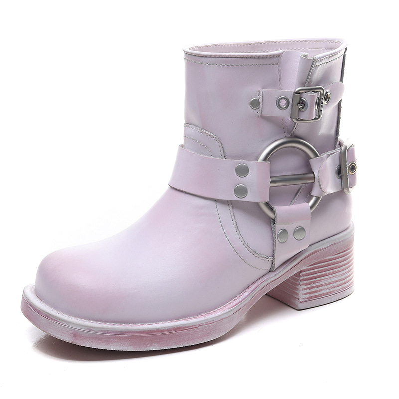 Xu Lu의 Miu 홈 새로운 짧은 부츠 여성 온라인 인기있는 뜨거운 가을과 겨울 영국 패션 조커 짧은 배럴 마틴 부츠