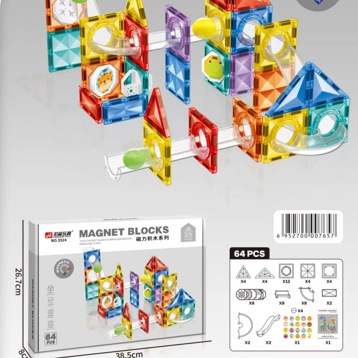 홍싱 3524 자석 조립 블록 어린이 재미있는 조기 교육 장난감 세트 조립 그림