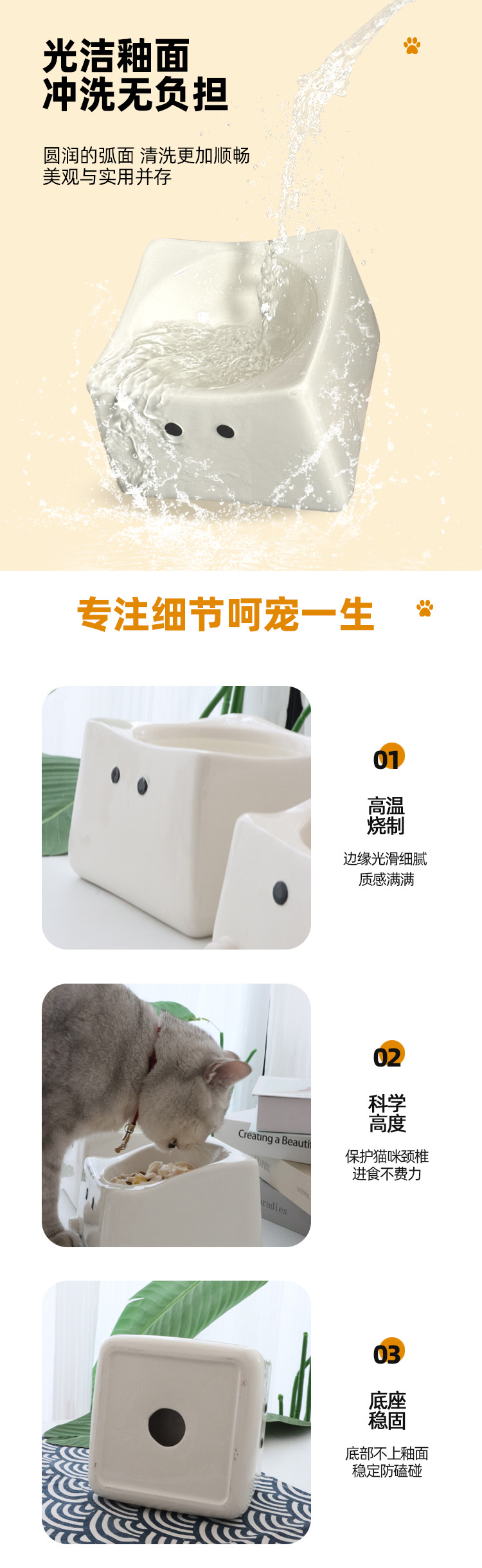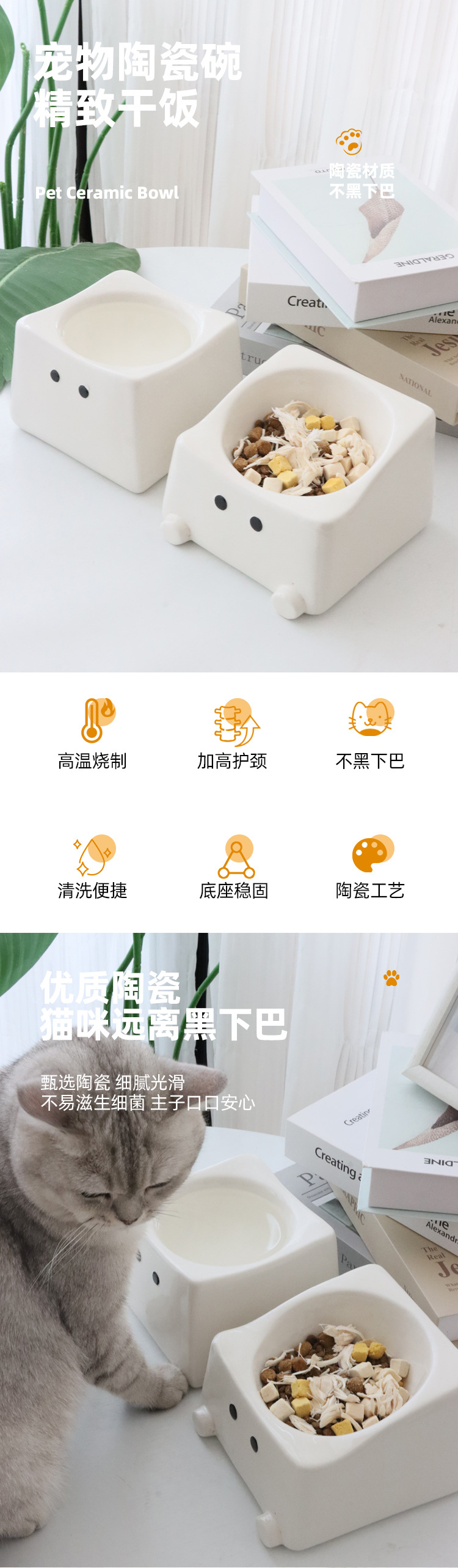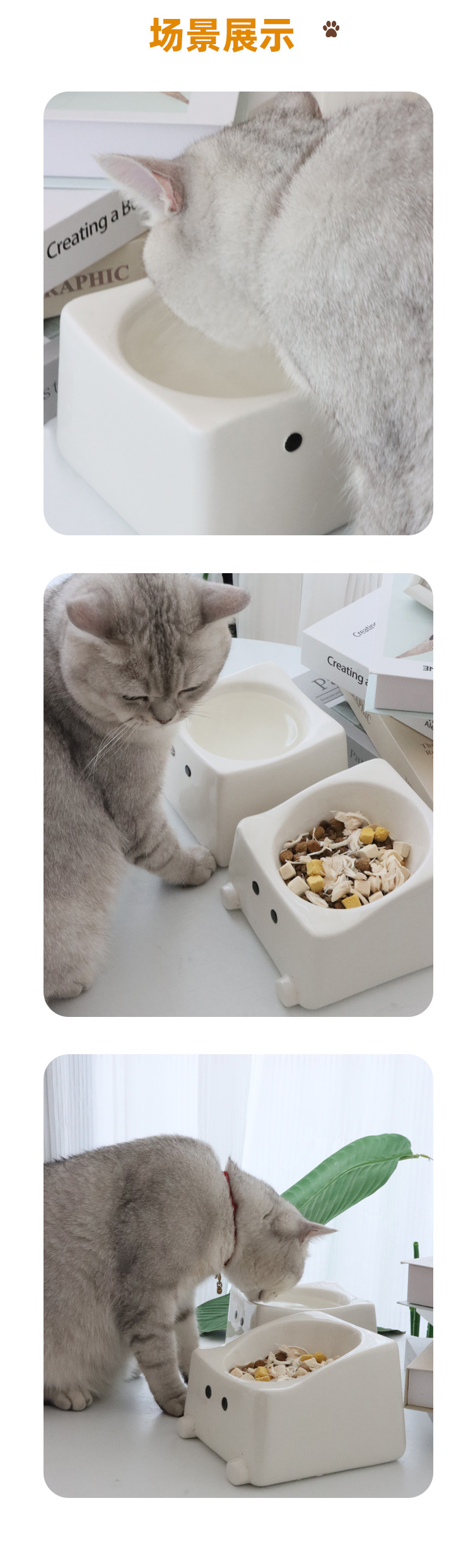 단색 간단한 세라믹 고양이 그릇 경사 입 대용량 엘프 고양이 그릇 안티 노크 높은 발 목 보호 그릇 안티 블랙 턱스토어 가기