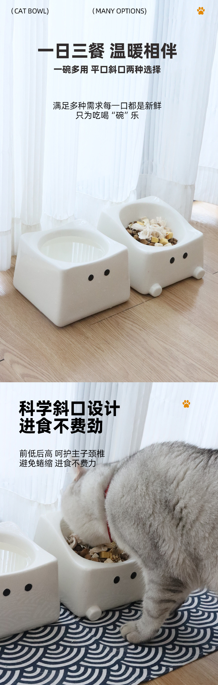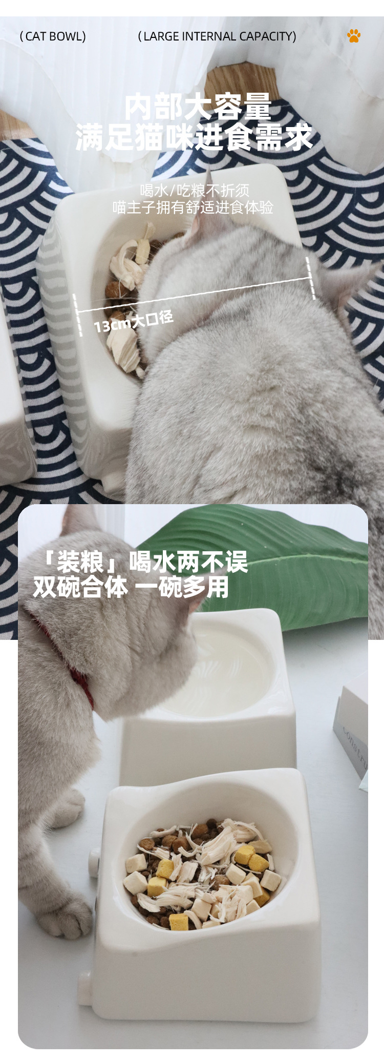 단색 간단한 세라믹 고양이 그릇 경사 입 대용량 엘프 고양이 그릇 안티 노크 높은 발 목 보호 그릇 안티 블랙 턱