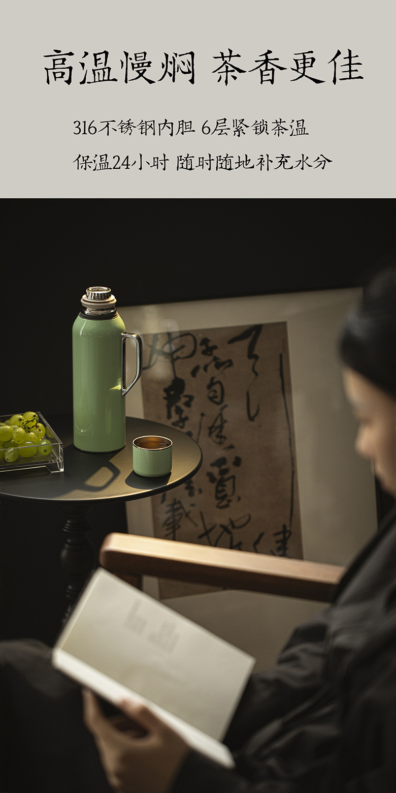 모지 찐 주전자 기계식 따뜻한 디스플레이 가정용 단열 주전자 316 스테인리스 스틸 야외 휴대용 우아한 단열 주전자
