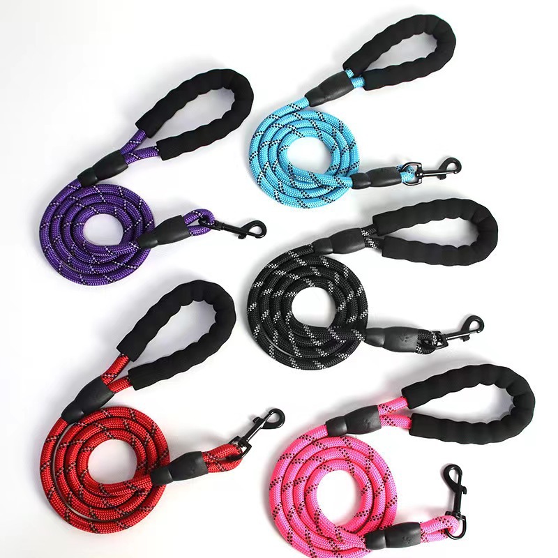 국경 간 애완 동물 반사 가죽 개 걷는 밤 반사 폭발 방지 가죽 가죽 끈 손 멀티 컬러 라운드 가죽 끈