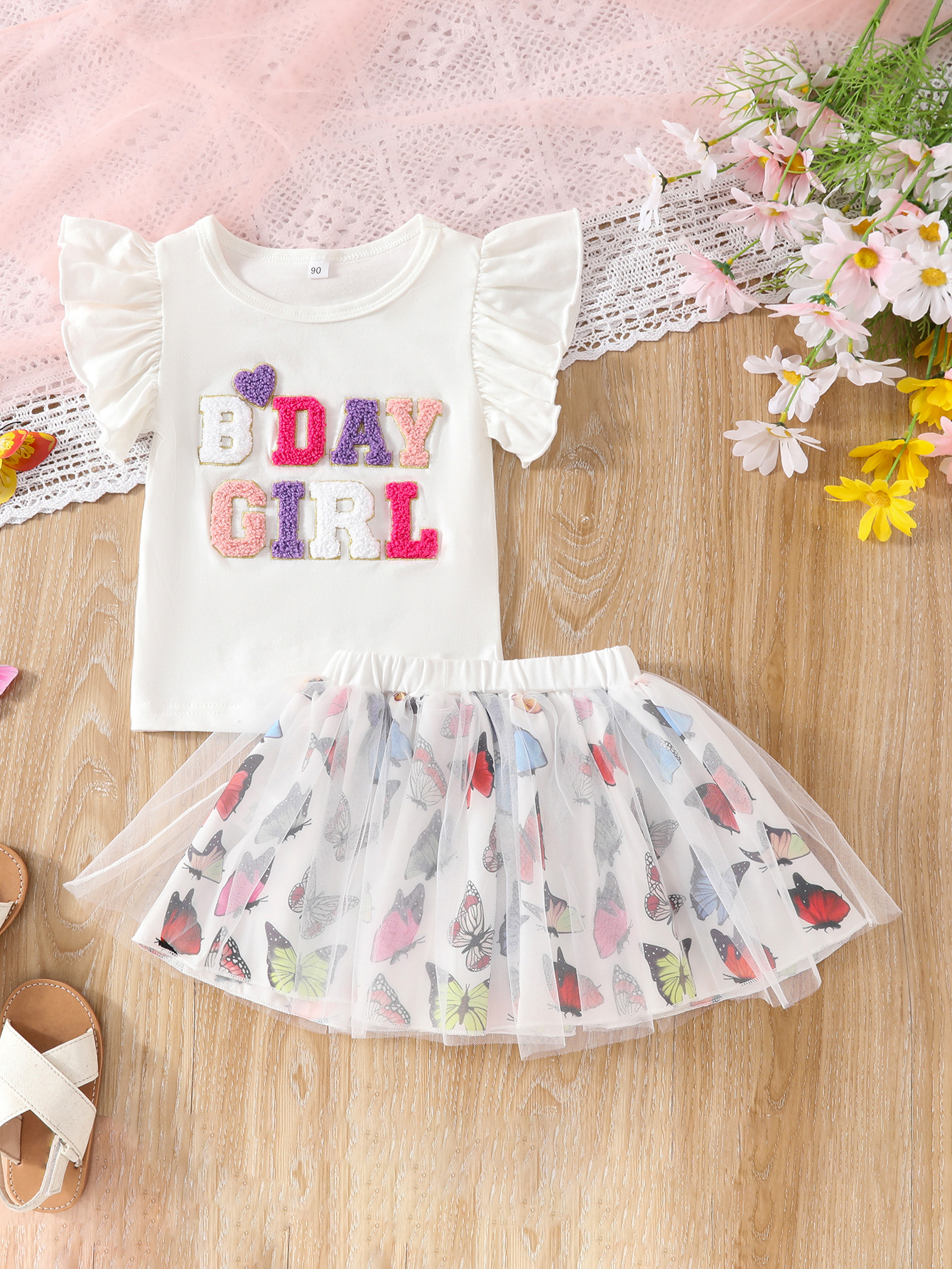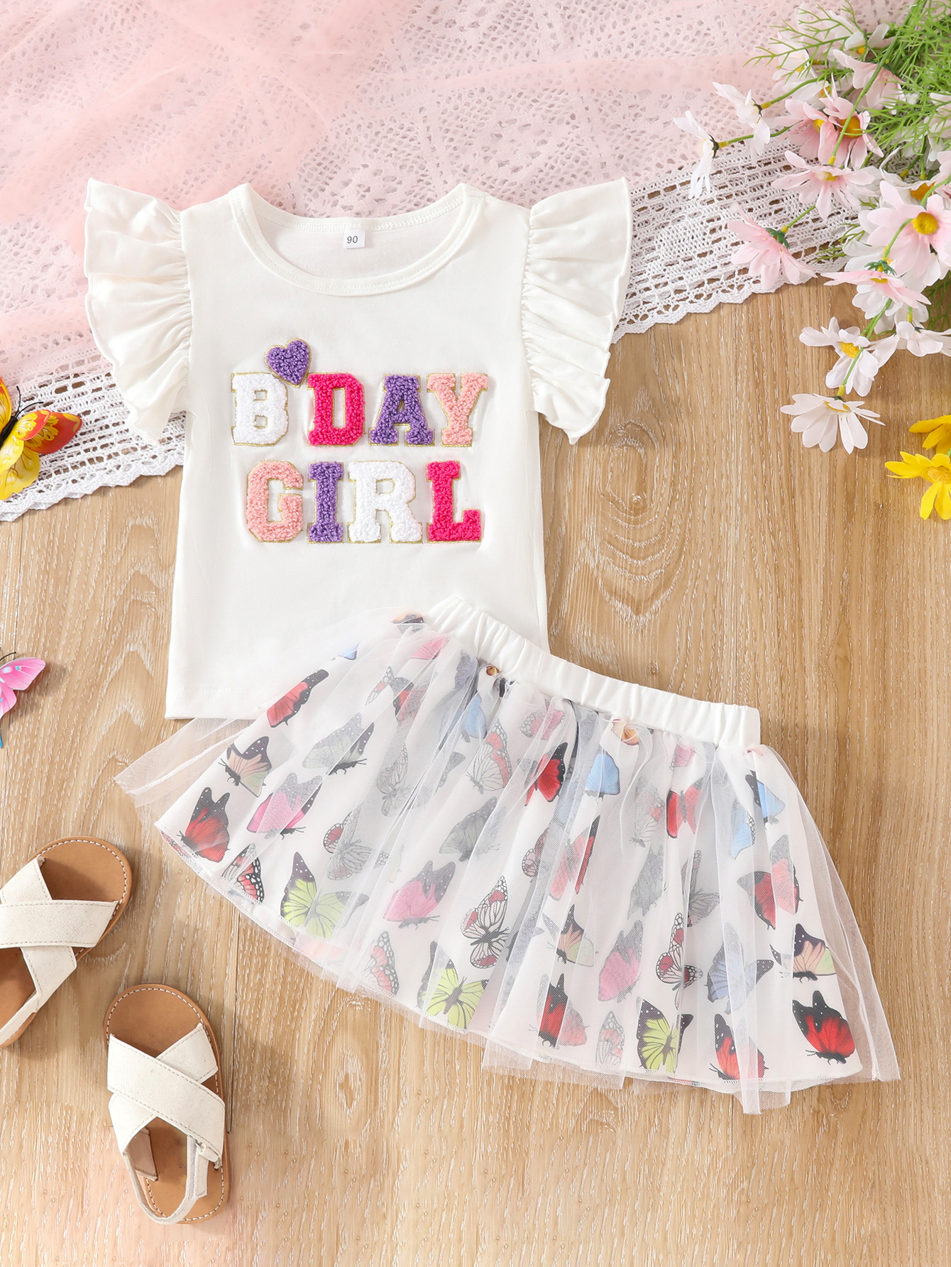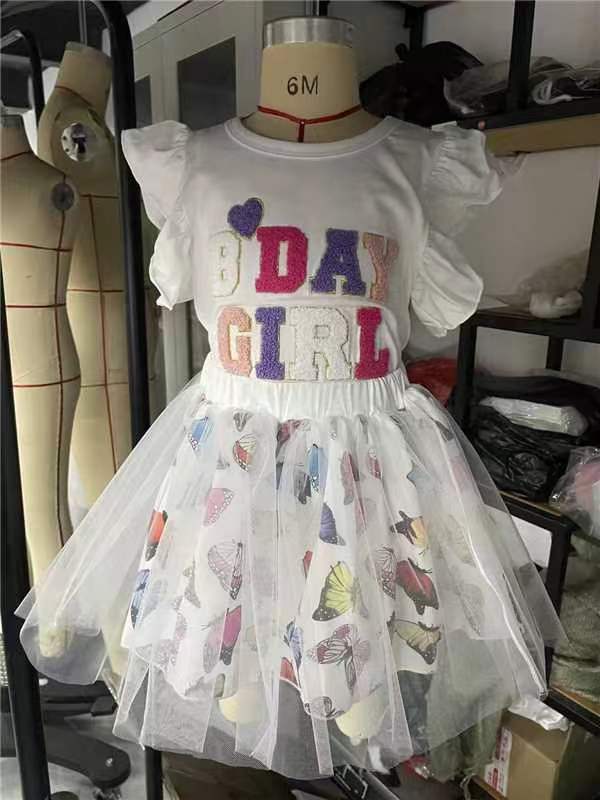 20252 여름 여아 인기 상품 작은 날개 소매 상의 타월 자수 생일 드레스 컬러풀한 퍼프 스커트 투피스 세트