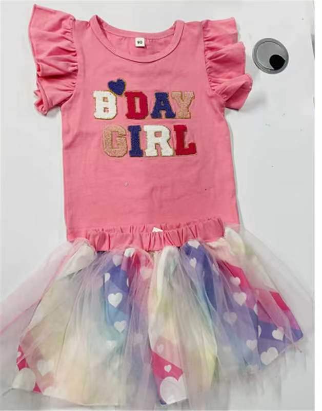 20252 여름 여아 인기 상품 작은 날개 소매 상의 타월 자수 생일 드레스 컬러풀한 퍼프 스커트 투피스 세트스토어 가기
