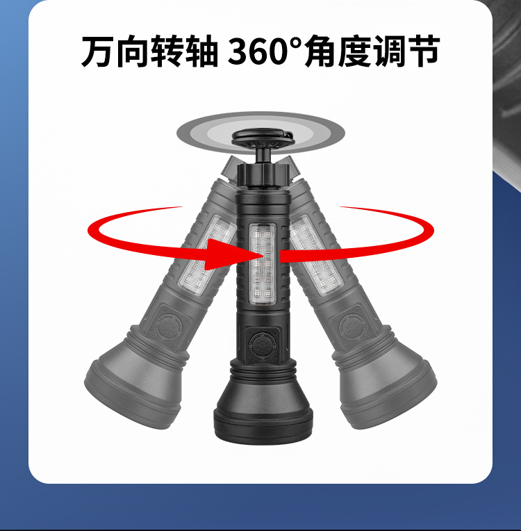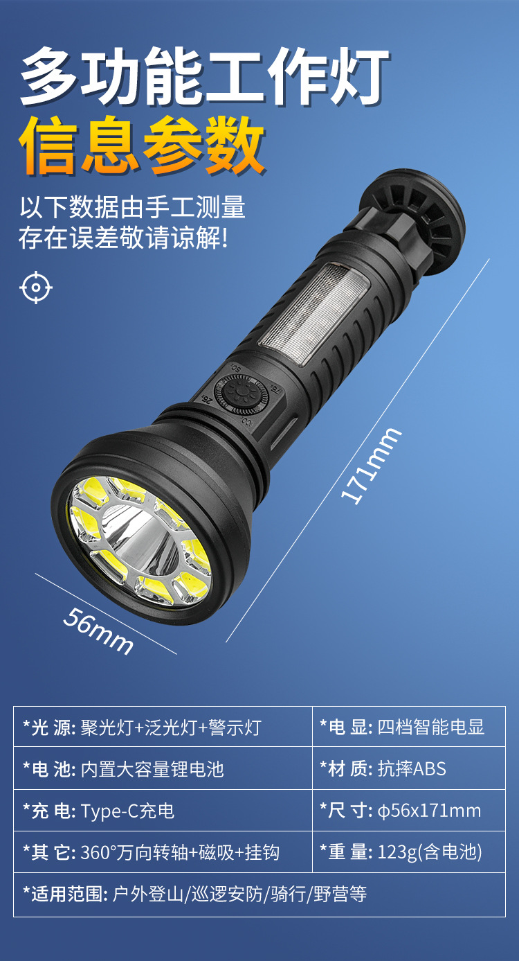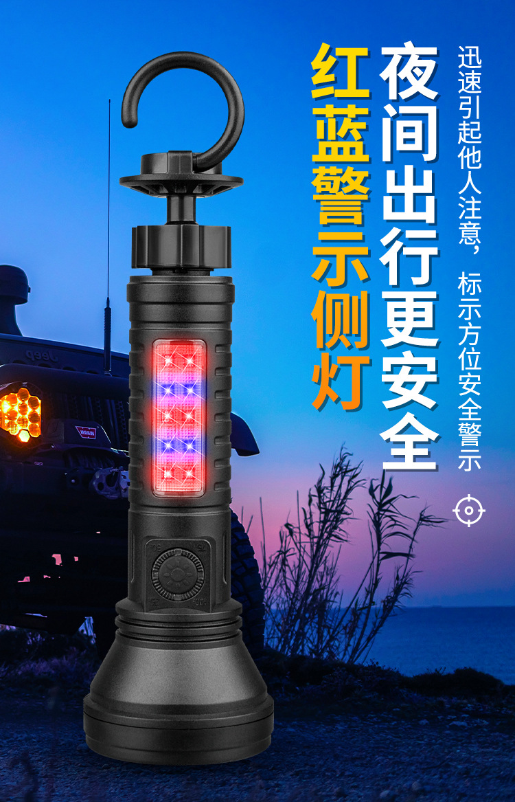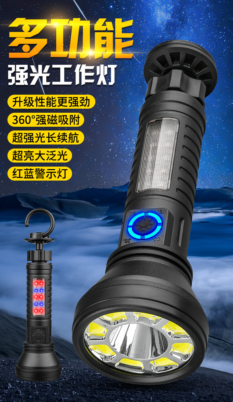 2024 다기능 손전등 충전식 휴대용 COB 자석 자동 수리 작업 조명 LED 빨간색과 파란색 깜박이는 경고등
