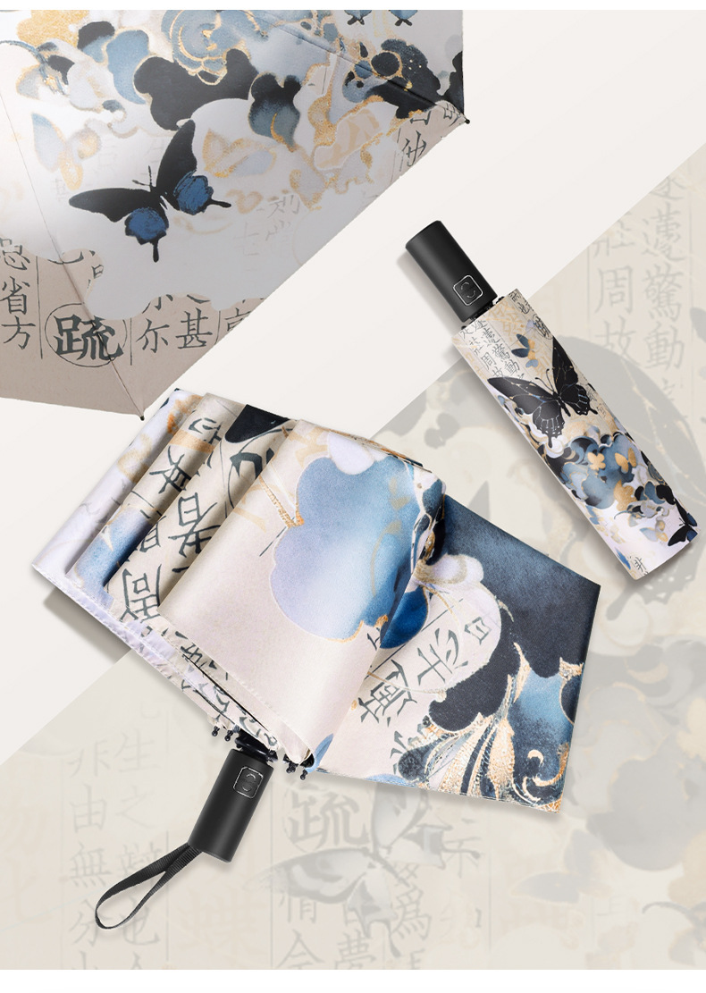 새로운 Guofeng 나비 우산 여성의 태양 보호 자외선 보호 햇빛과 비 보호 이중 목적 자동 학생 접이식 휴대용 태양 우산