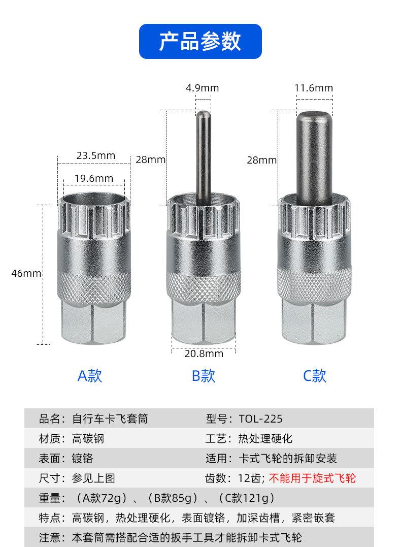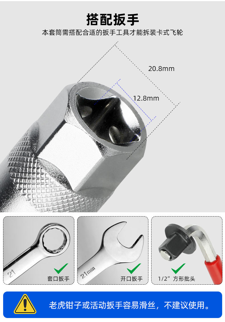 자전거 카세트 플라이휠 슬리브 12-톱니 슬리브 산악 자전거 장착 및 해체 도구 막대가 없는로드로 클램핑 및 해체