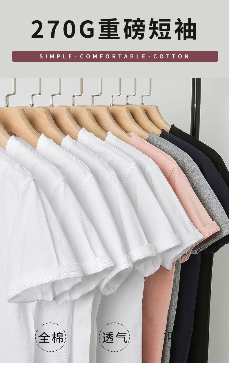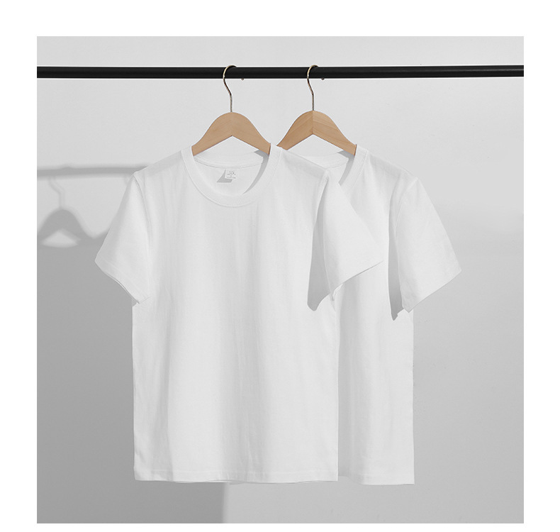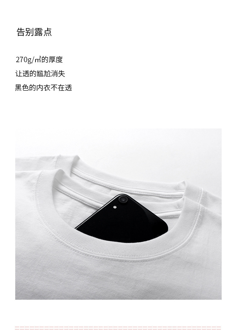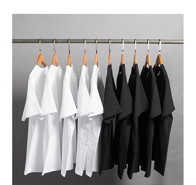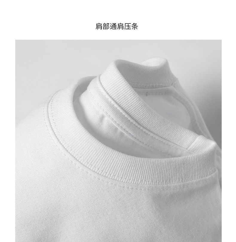260g 신장면 화이트 티셔츠 반 소매 어깨 너비 느슨한 무거운 짧은 소매 느슨한 일본 승무원 단색 면 남성 T스토어 가기