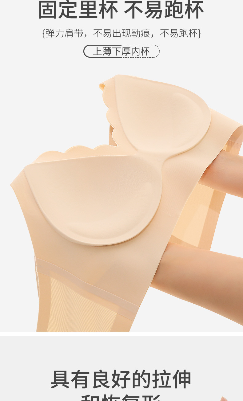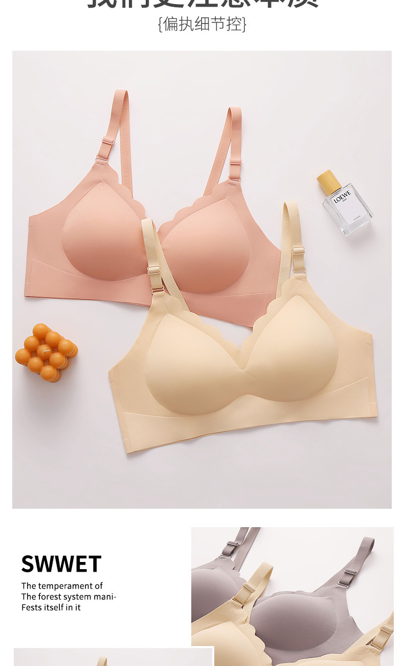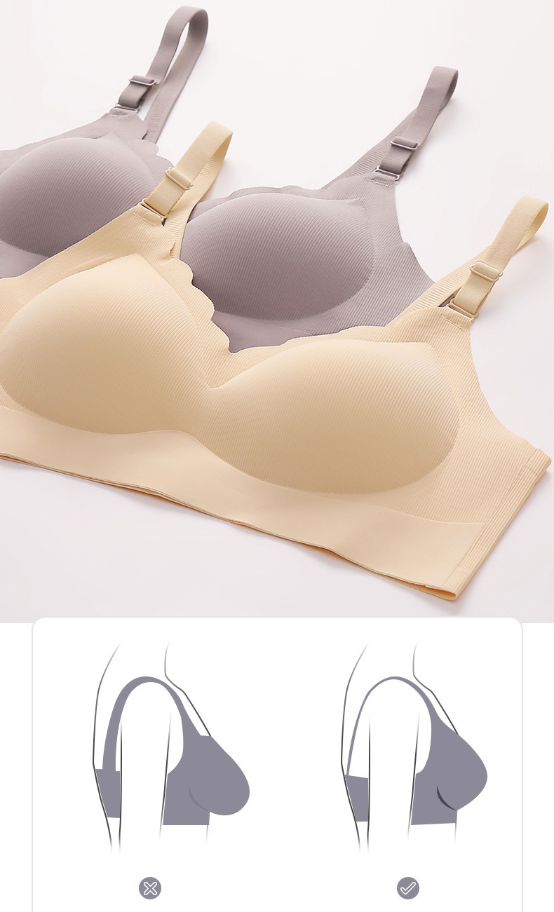 [하이 퀄리티] 고정 컵 이음매없는 속옷 여성용 작은 가슴, 스틸 링 원피스 뷰티 조끼 브라 없이 모였다