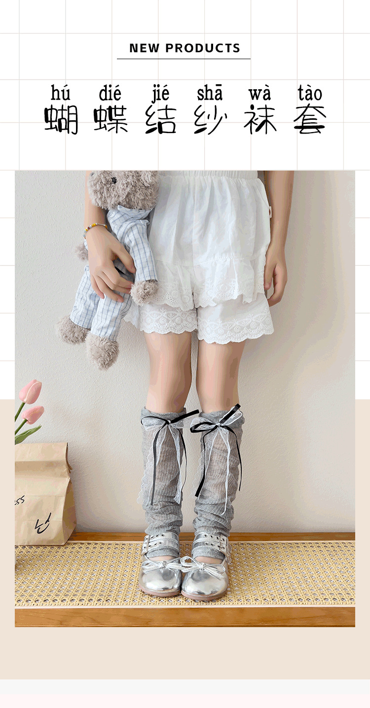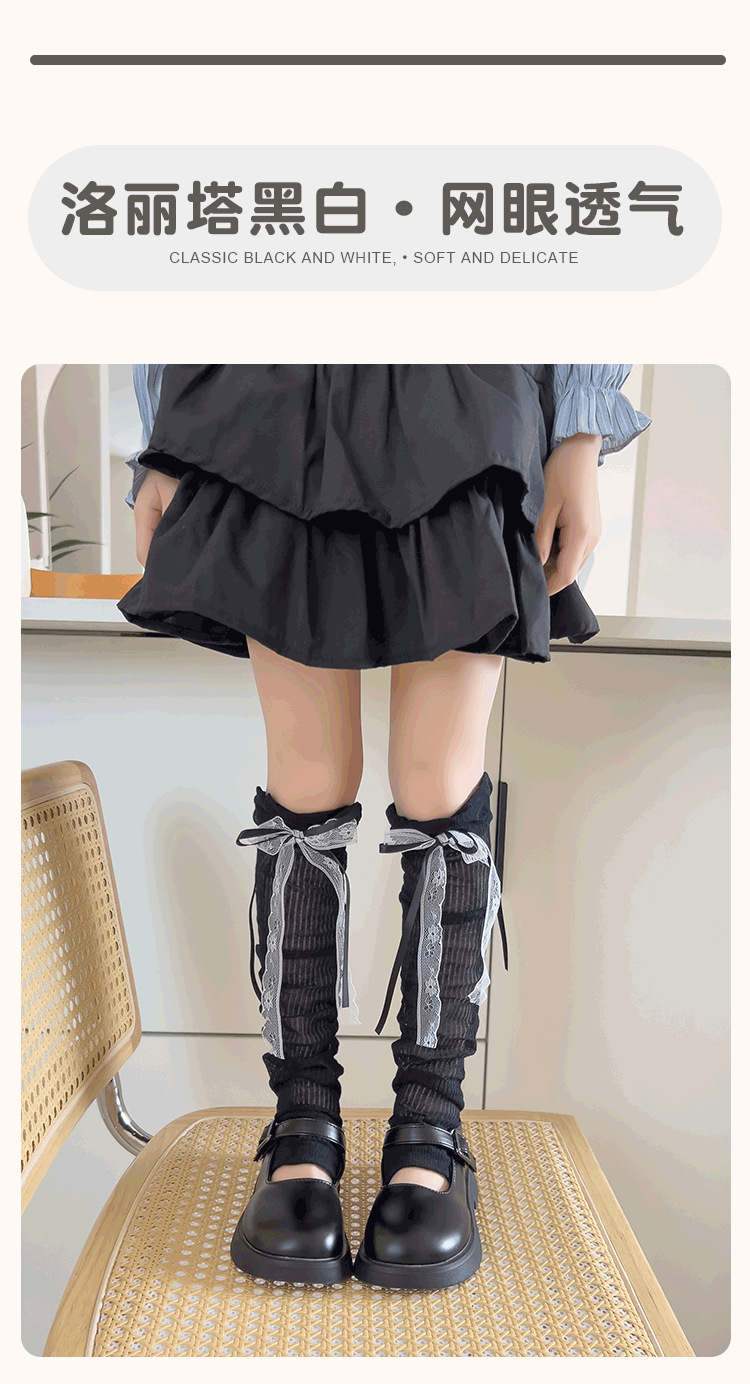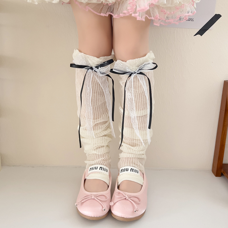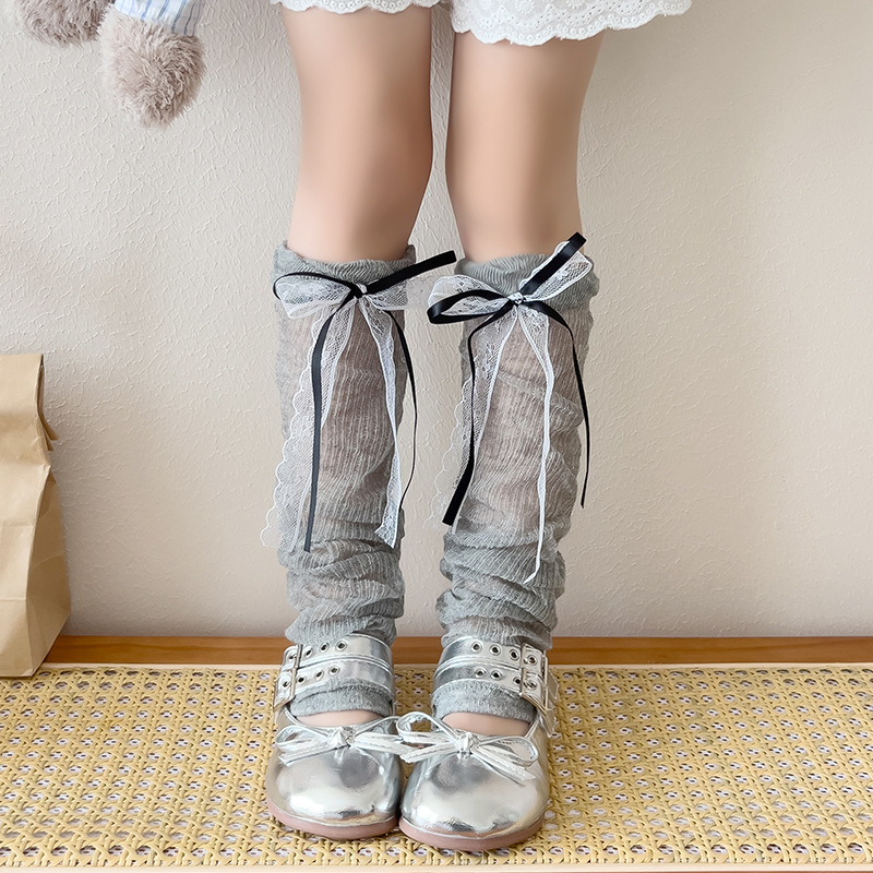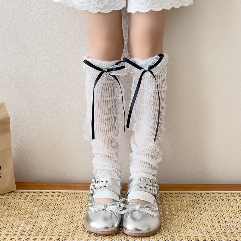 소녀 양말 여름 얇은 안티 모기 양말 보우 더미 로리타 어린이와 소녀 롱 튜브 태양 보호 장갑