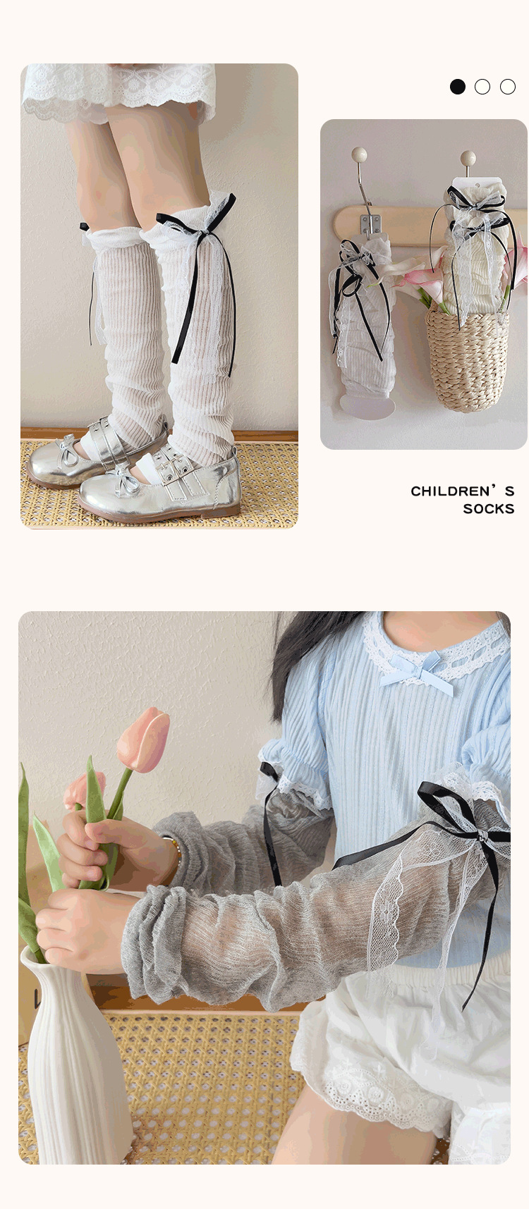 소녀 양말 여름 얇은 안티 모기 양말 보우 더미 로리타 어린이와 소녀 롱 튜브 태양 보호 장갑스토어 가기