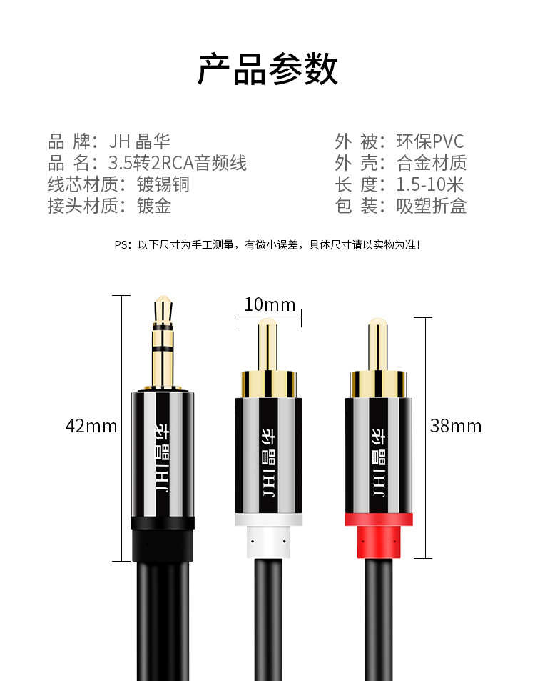3.5mm 1-2 오디오 케이블 3.5-2RCA 더블 연꽃 컴퓨터 오디오 휴대 전화 전원 증폭기 오디오 케이블