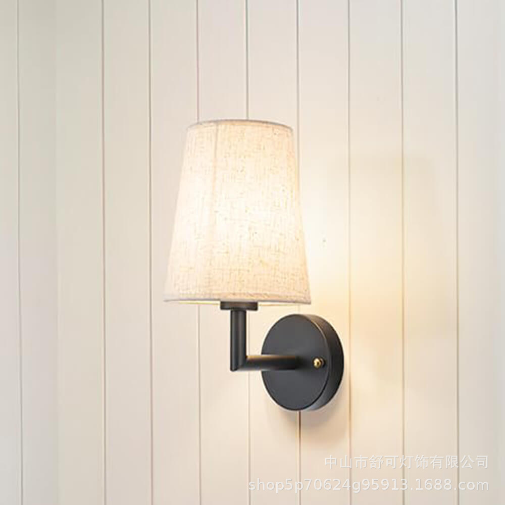사용자 정의 미국 구리 벽 램프 소박한 천 커버 LED 램프 현대 간단한 침실 머리맡 램프 따뜻하고 세련된 테이블 램프스토어 가기