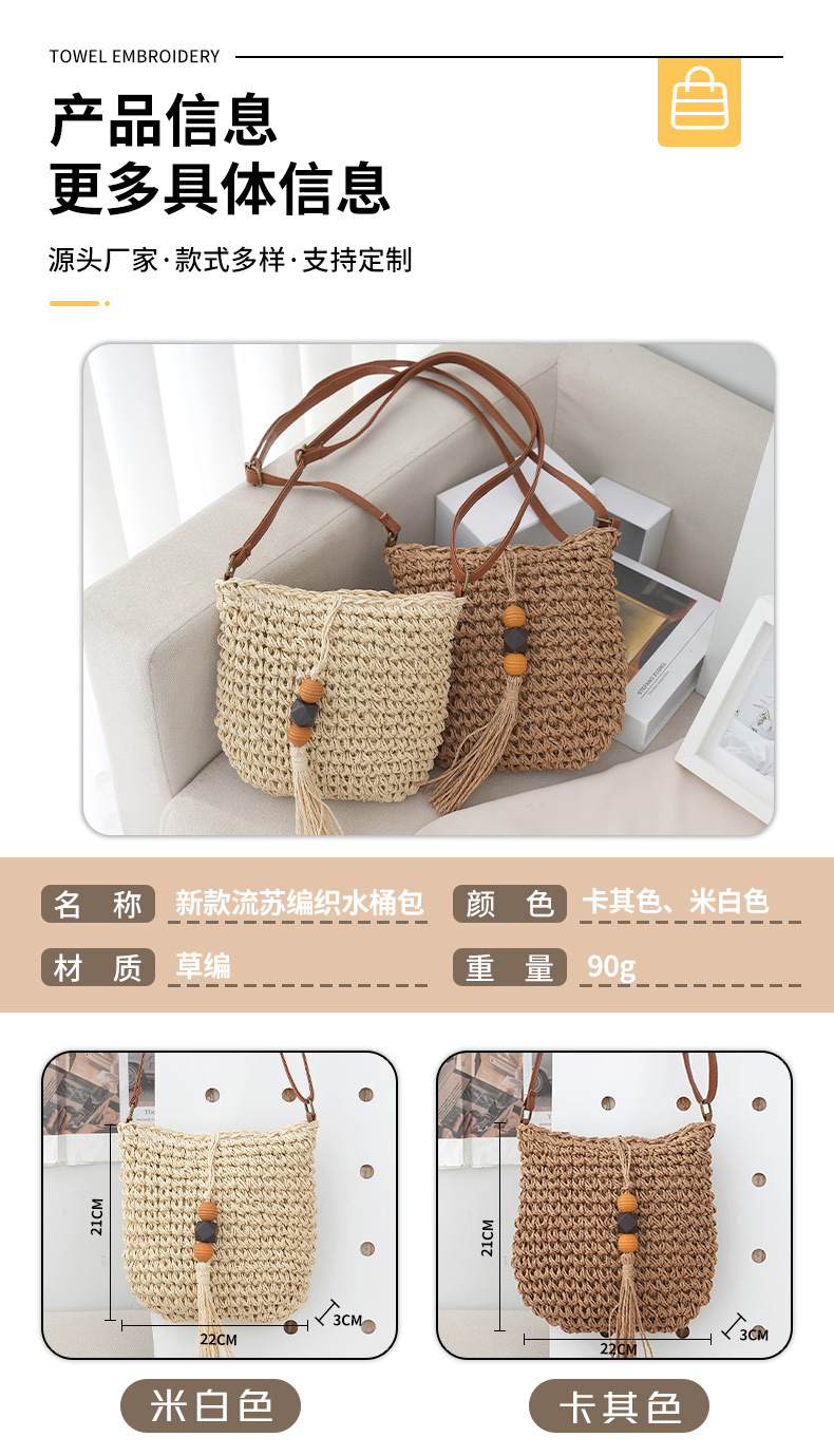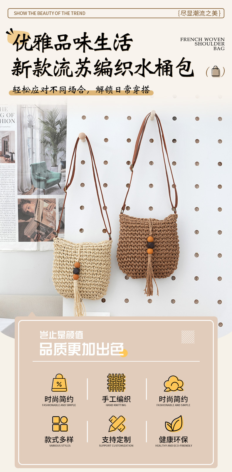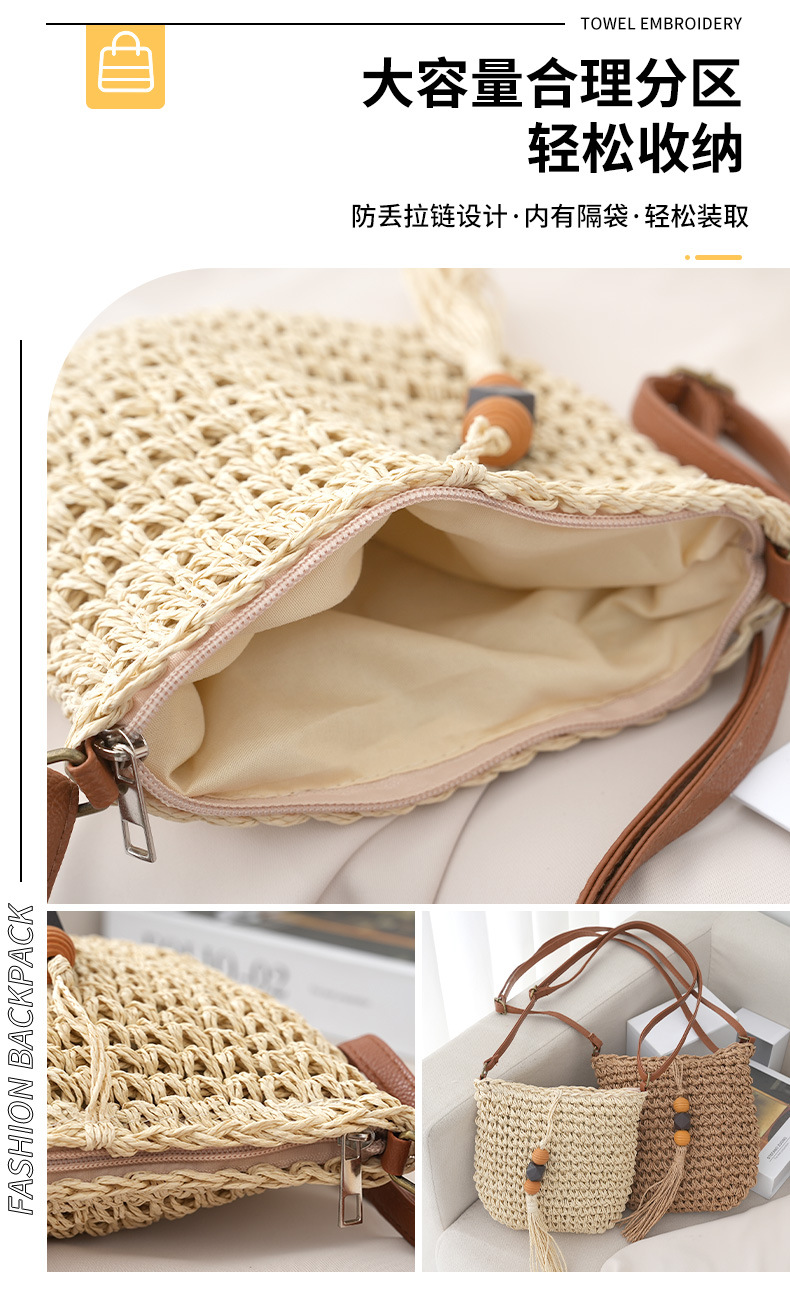 공장 도매 직접 밀짚 크로스 바디 가방 새로운 여름 술 수제 짠 가방 휴가 비치 가방 올 매치 여성용 가방스토어 가기