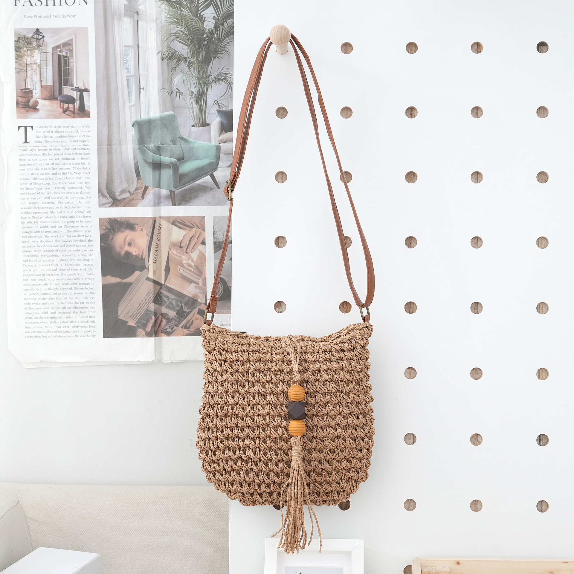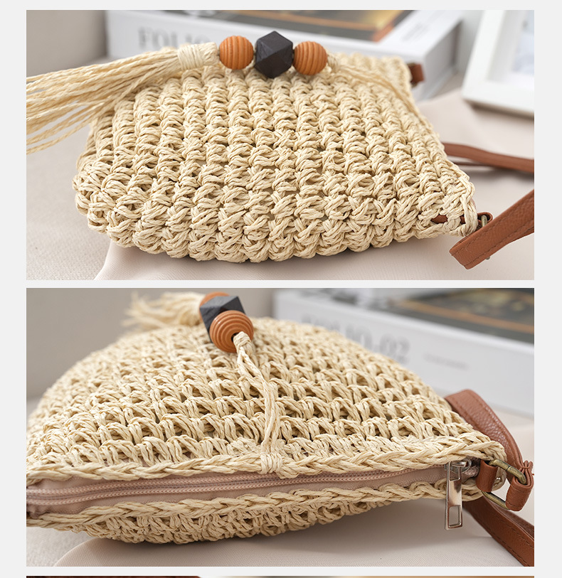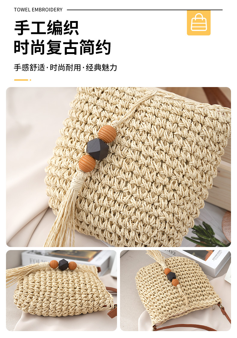 공장 도매 직접 밀짚 크로스 바디 가방 새로운 여름 술 수제 짠 가방 휴가 비치 가방 올 매치 여성용 가방