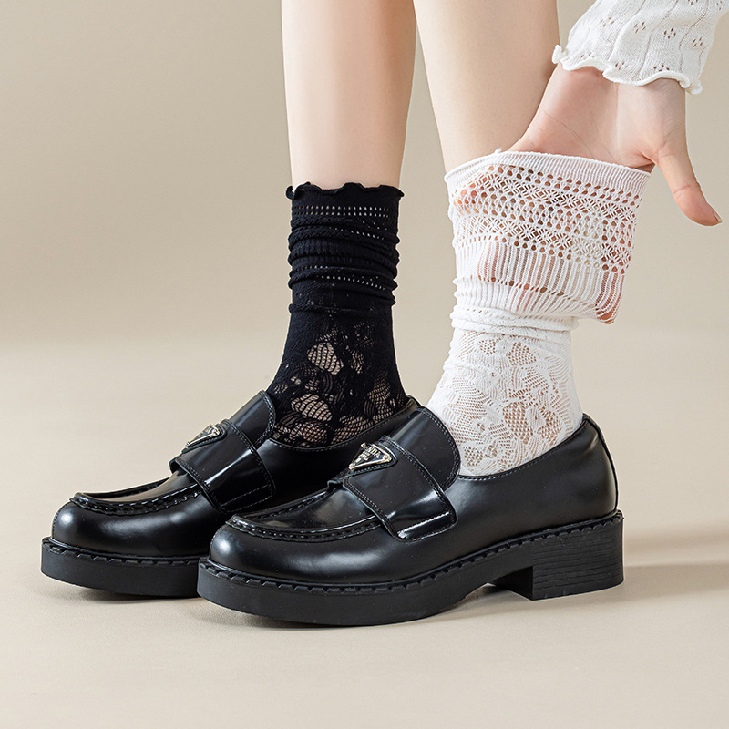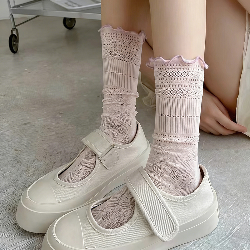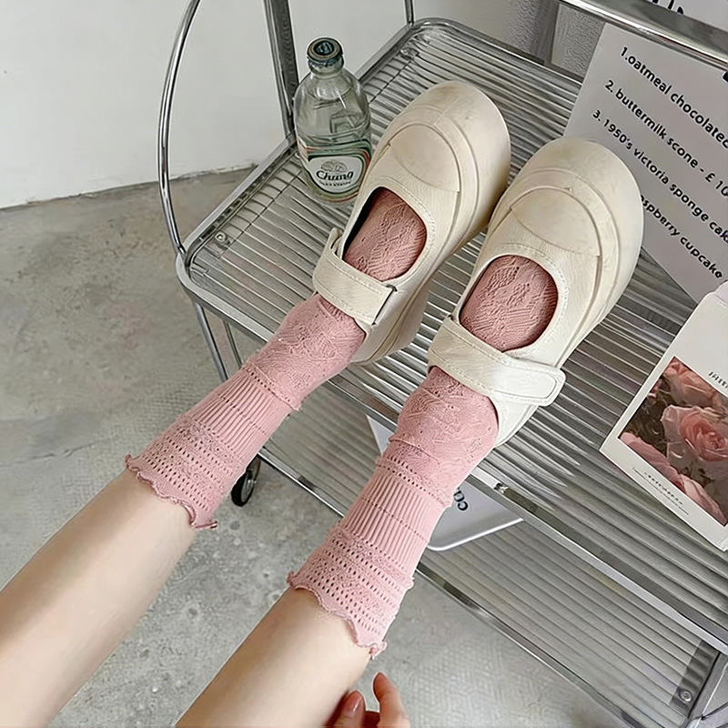 여름 얇은 단색 메쉬 중공 더미 양말 여성 JK 레트로 슬리밍 무릎 높이 니치 송아지 발레 무릎 높은 양말
