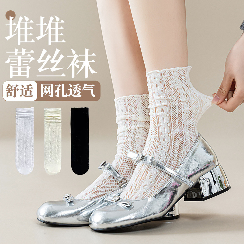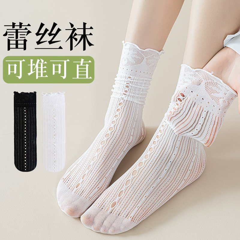 여름 얇은 단색 메쉬 중공 더미 양말 여성 JK 레트로 슬리밍 무릎 높이 니치 송아지 발레 무릎 높은 양말스토어 가기