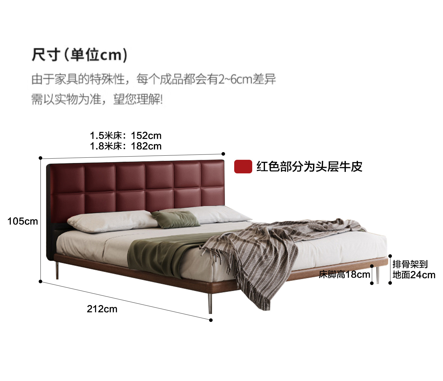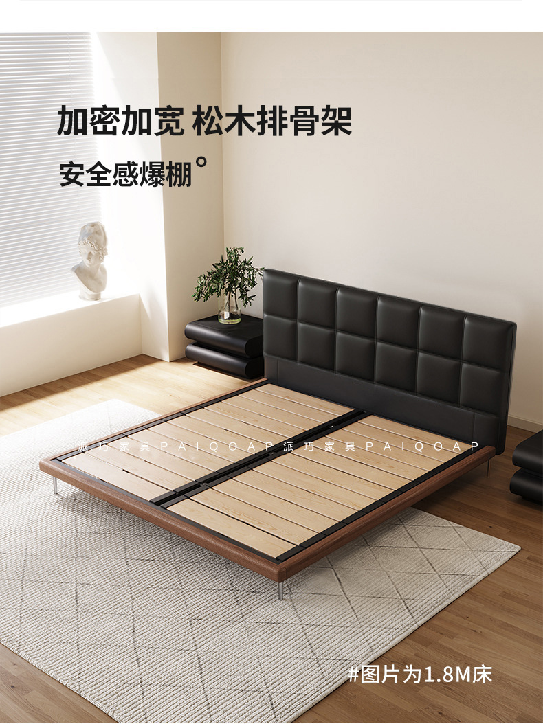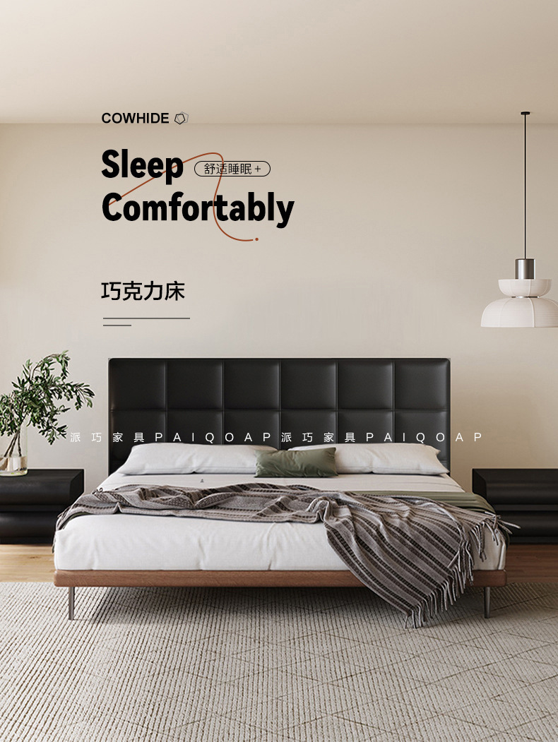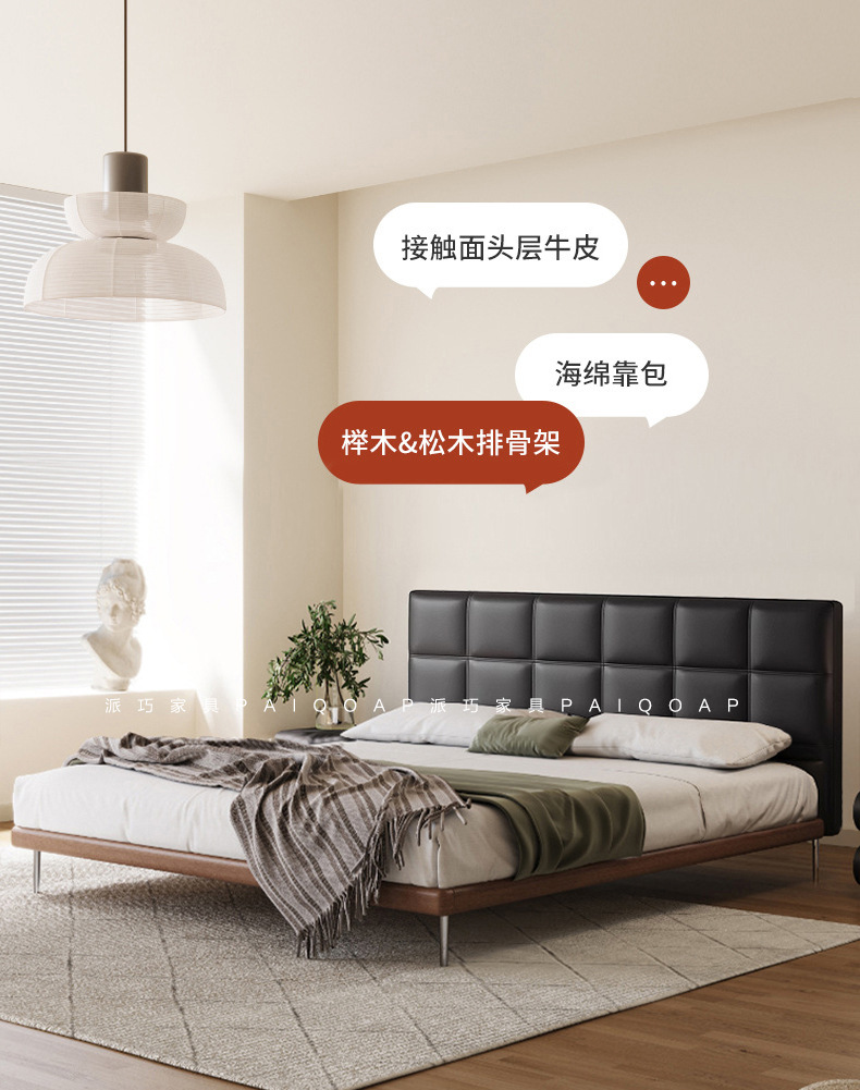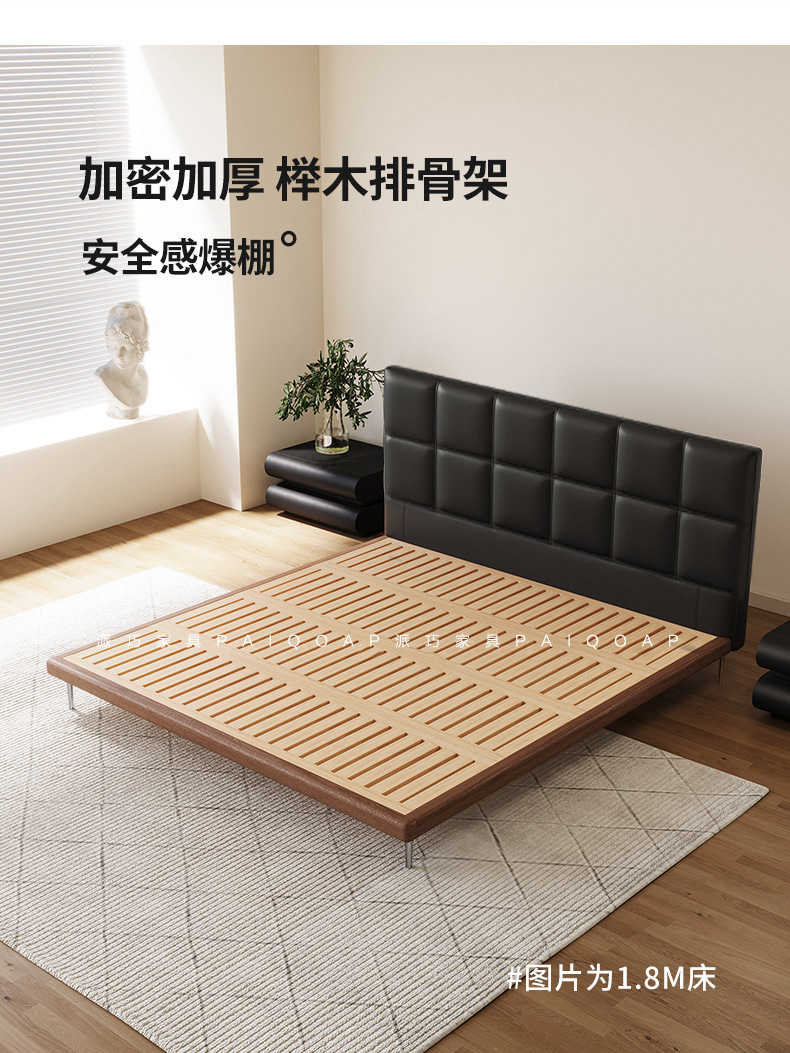 가죽 침대 현대 간단한 소프트 백 마스터 침실 퀸 침대 이탈리아 미니멀리스트 2024 새로운 1.8 m 높은 피트 더블 웨딩 침대