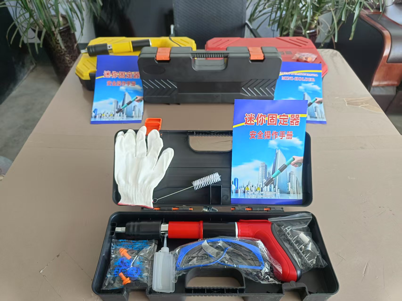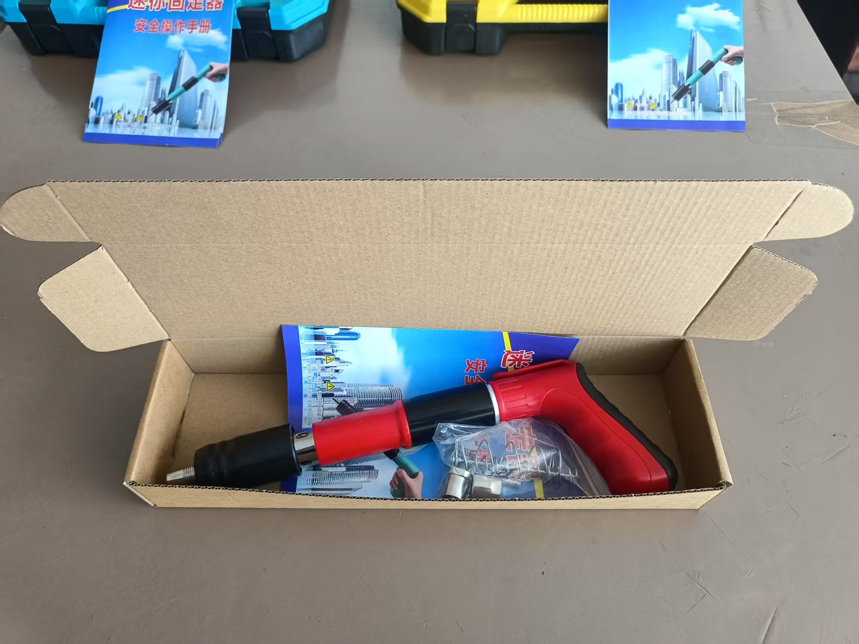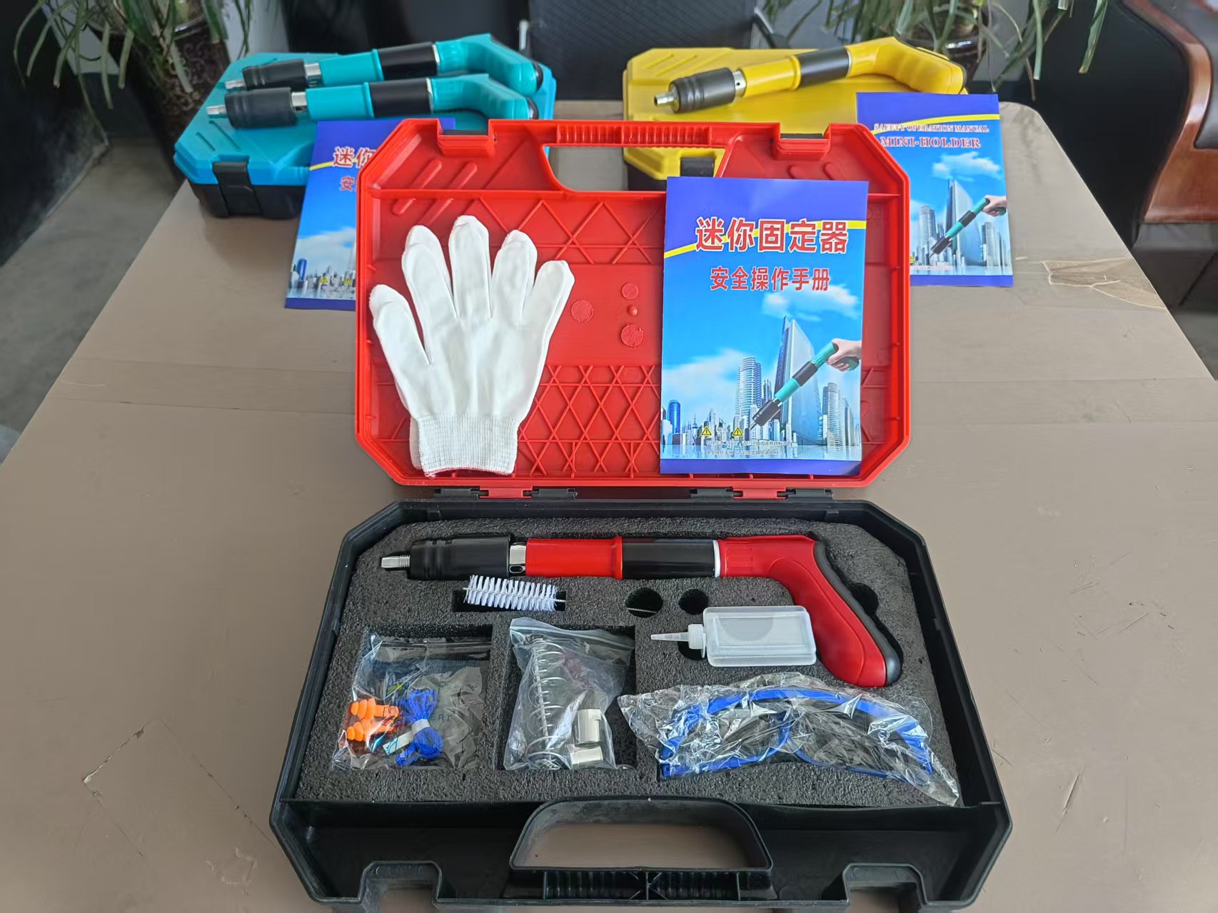 • 빨간색 단일 총 + 액세서리 가방 + 못 200개