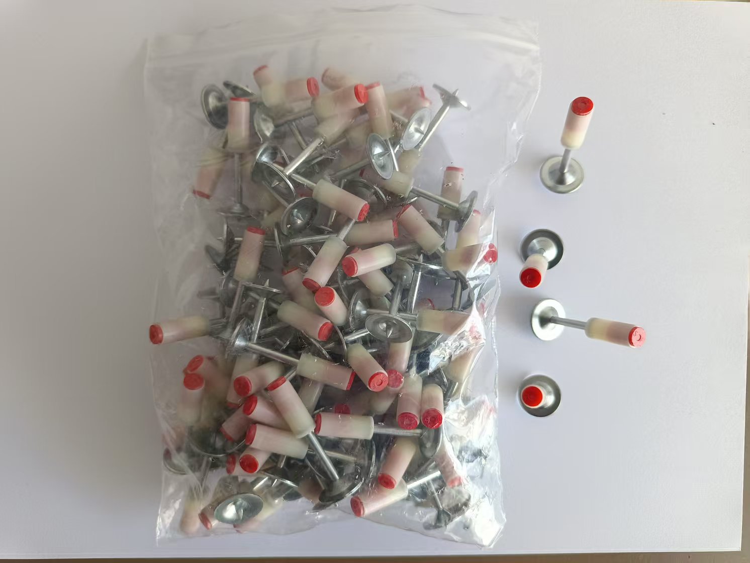 • 빨간색 단일 총 + 액세서리 가방 + 못 100개