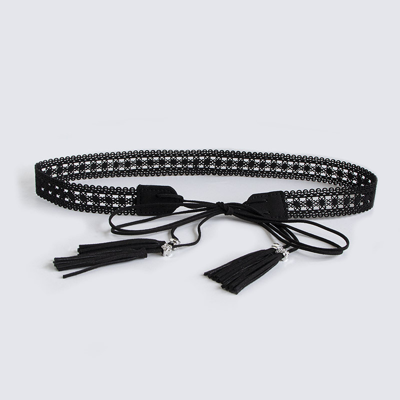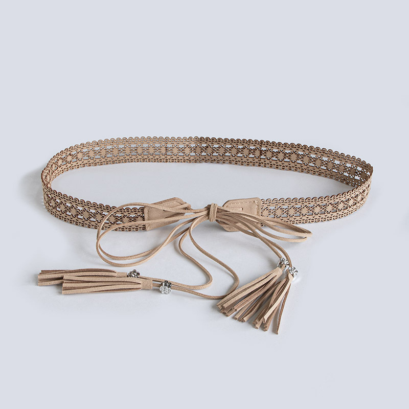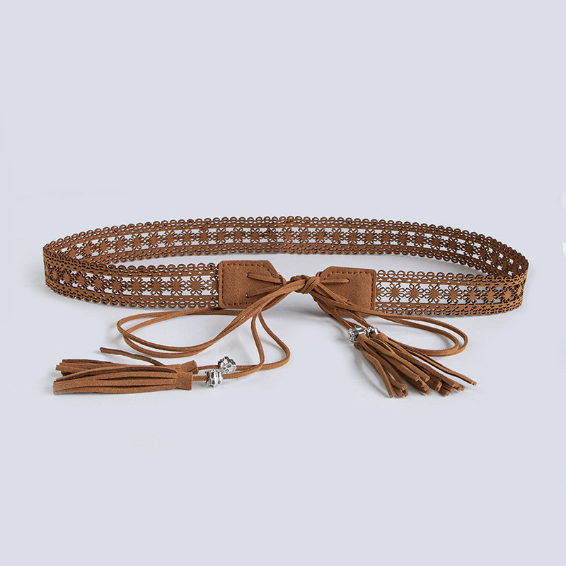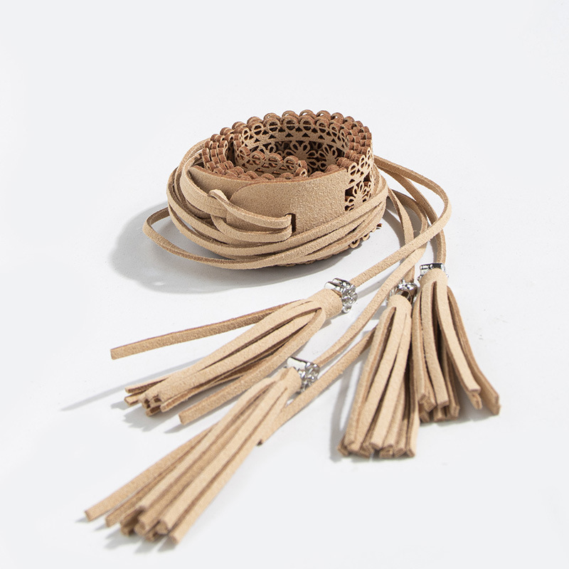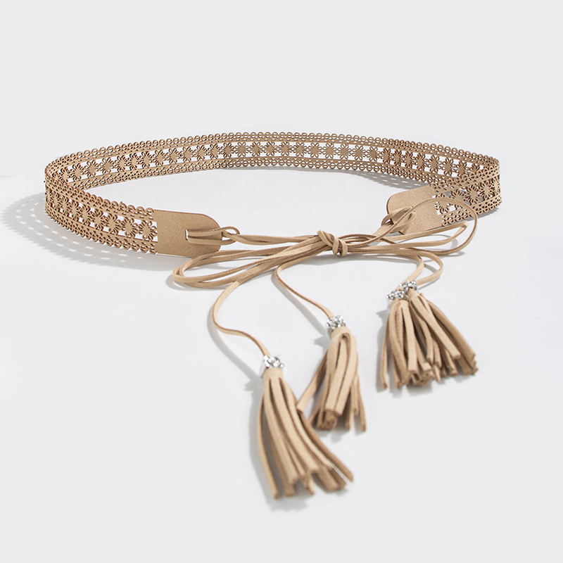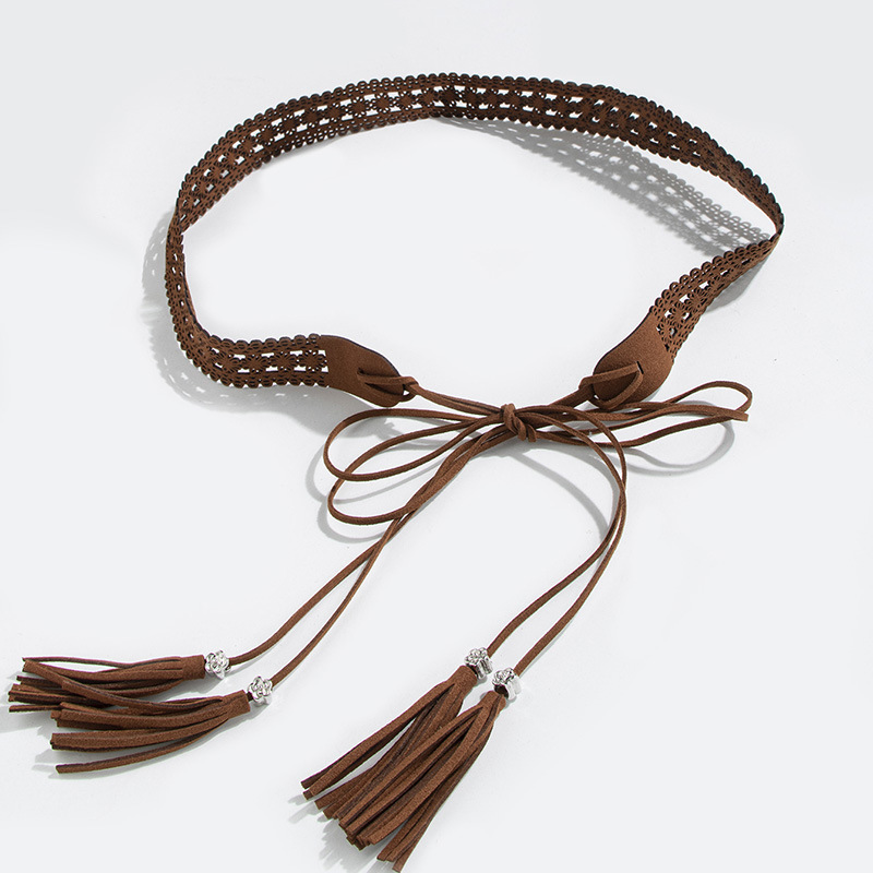 보헤미안 벨트 할로우 술 허리 로프 타이 민족 스타일 벨트 슈퍼 섬유 소프트 텍스트 허리 로프
