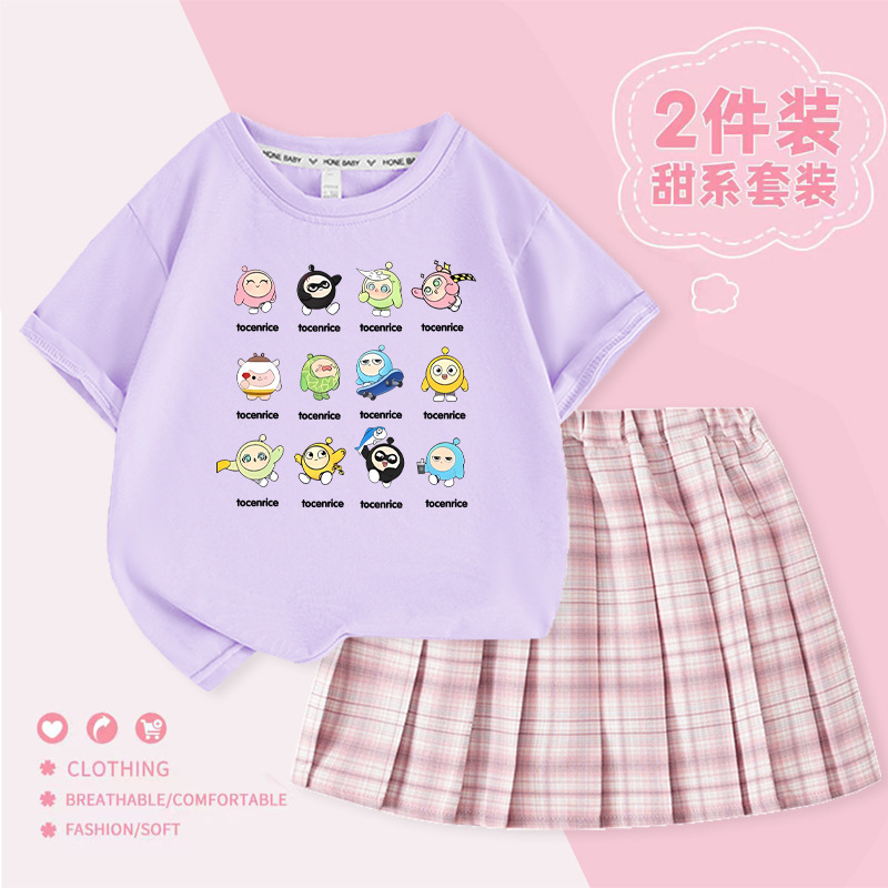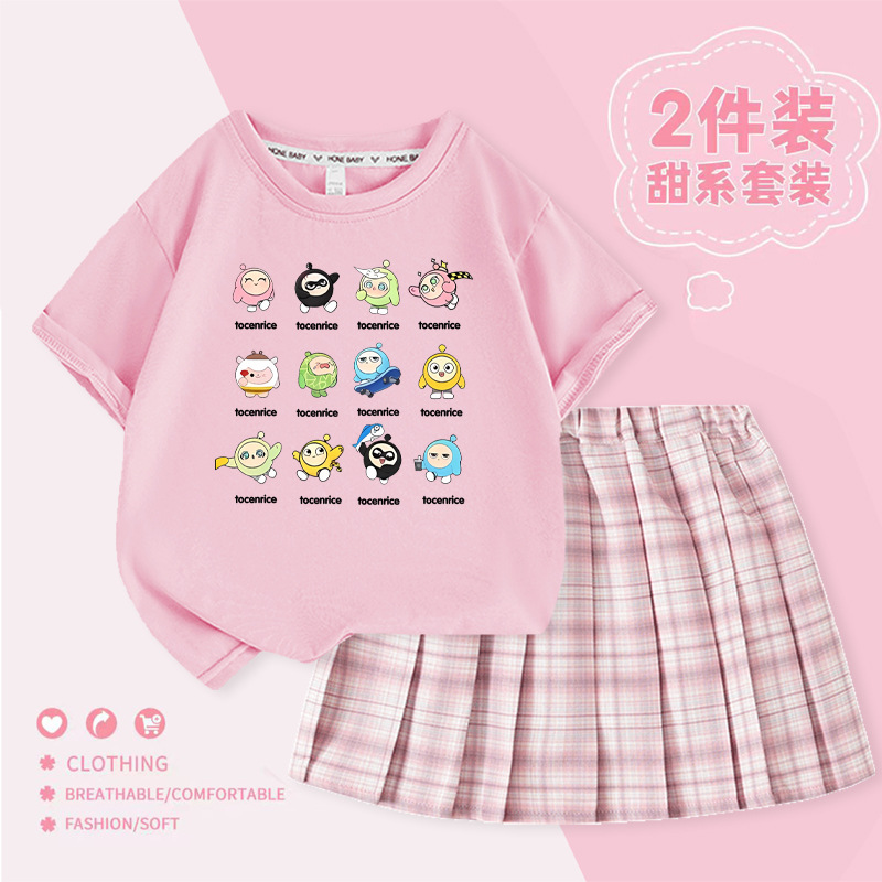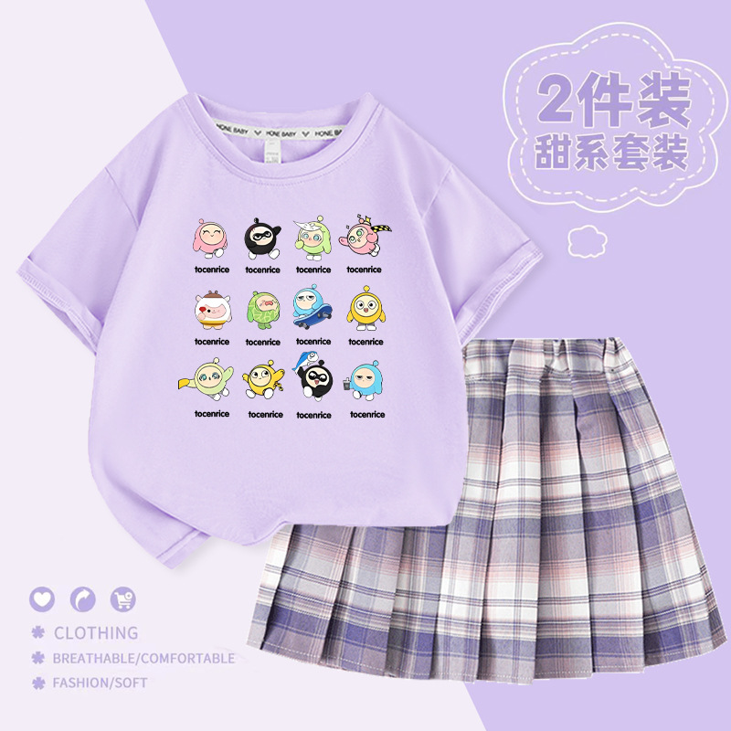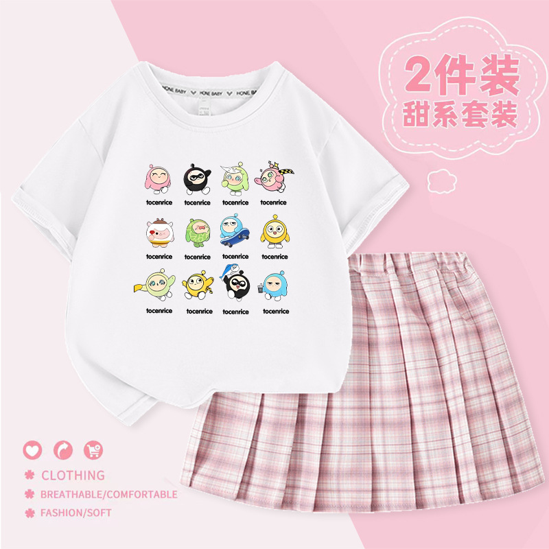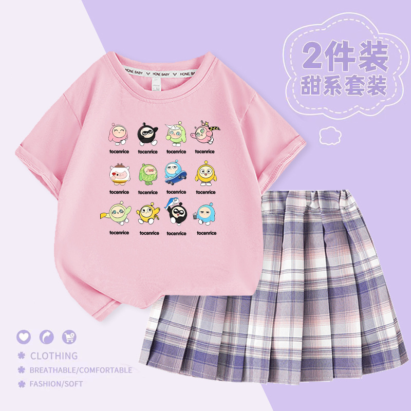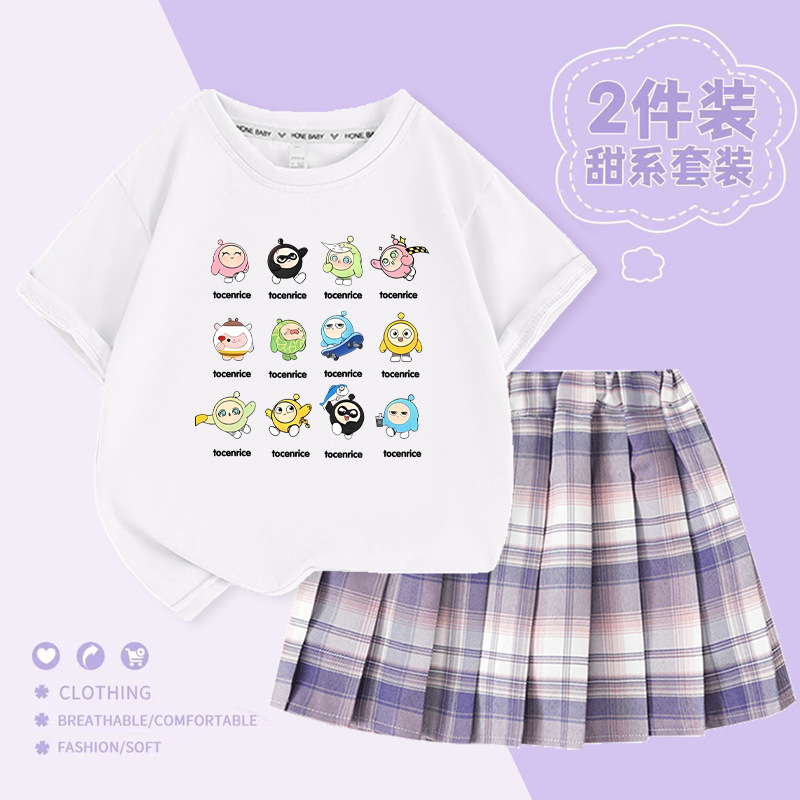 국경 간 만화 소녀 세트 여름 어린이 대학 스타일 JK 스커트 큰 어린이 반팔 웨스턴 스타일 소녀의 주름 치마 트렌디스토어 가기
