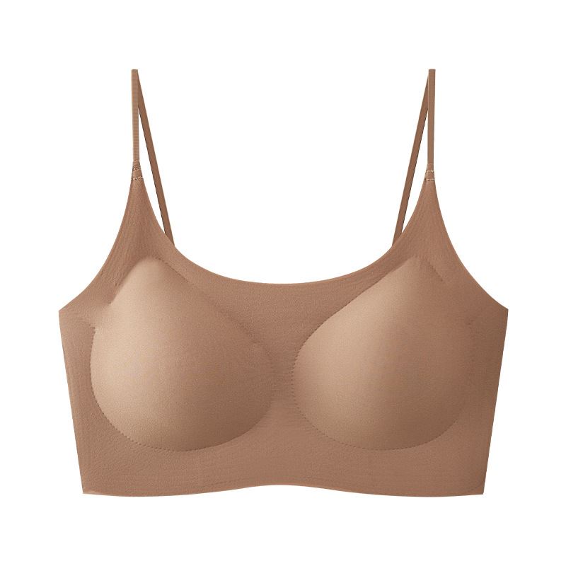 광택 있는 고정형 가슴 패드가 있는 스포츠 브라, 누드 느낌의 여성용 등 노출형 피트니스 러닝 중간 강도 요가 브라, 가벼운 백리스 디자인